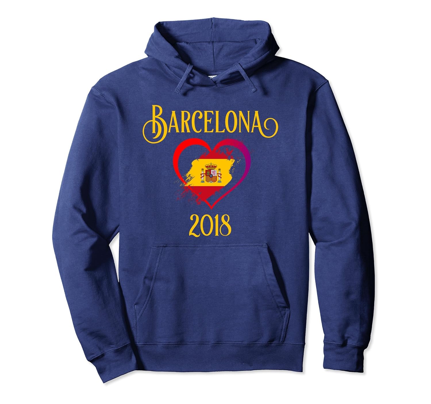 Solid colors: 80% Cotton, 20% Polyester; Heather Grey: 78% Cotton, 22% Poly; Dark Heather: 50% Cotton, 50% Polyester; Imported; Machine wash cold with like colors, dry low heat; The hoodie you need to start your Barcelona Spain vacation off right. Barcelona spelled out in an artisan style with the flag of Spain stylized in an embracing heart.; Perfect gift for anyone vacationing in Barcelona in 2018; 8.5 oz, Classic fit, Twill-taped neck