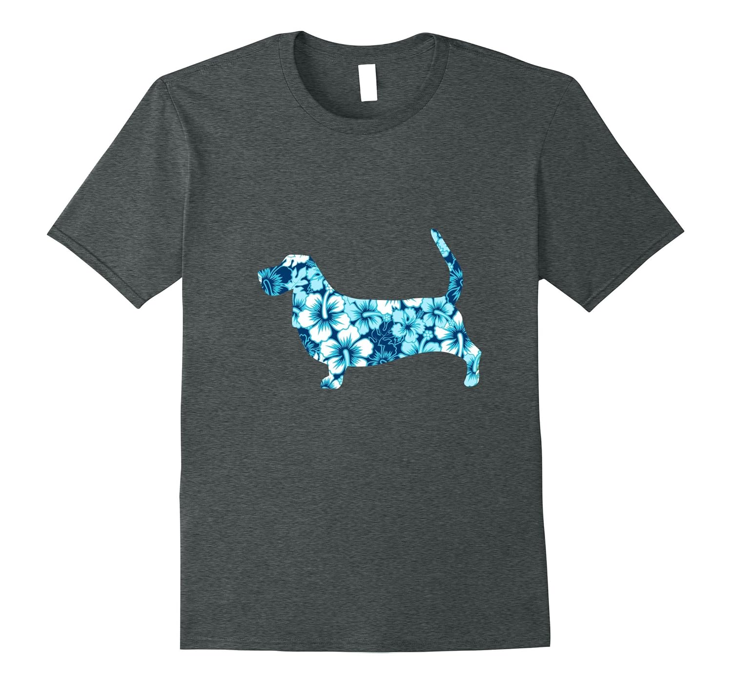 Basset Hound Aloha Dog Silhouette T-Shirt Blue-ANZ