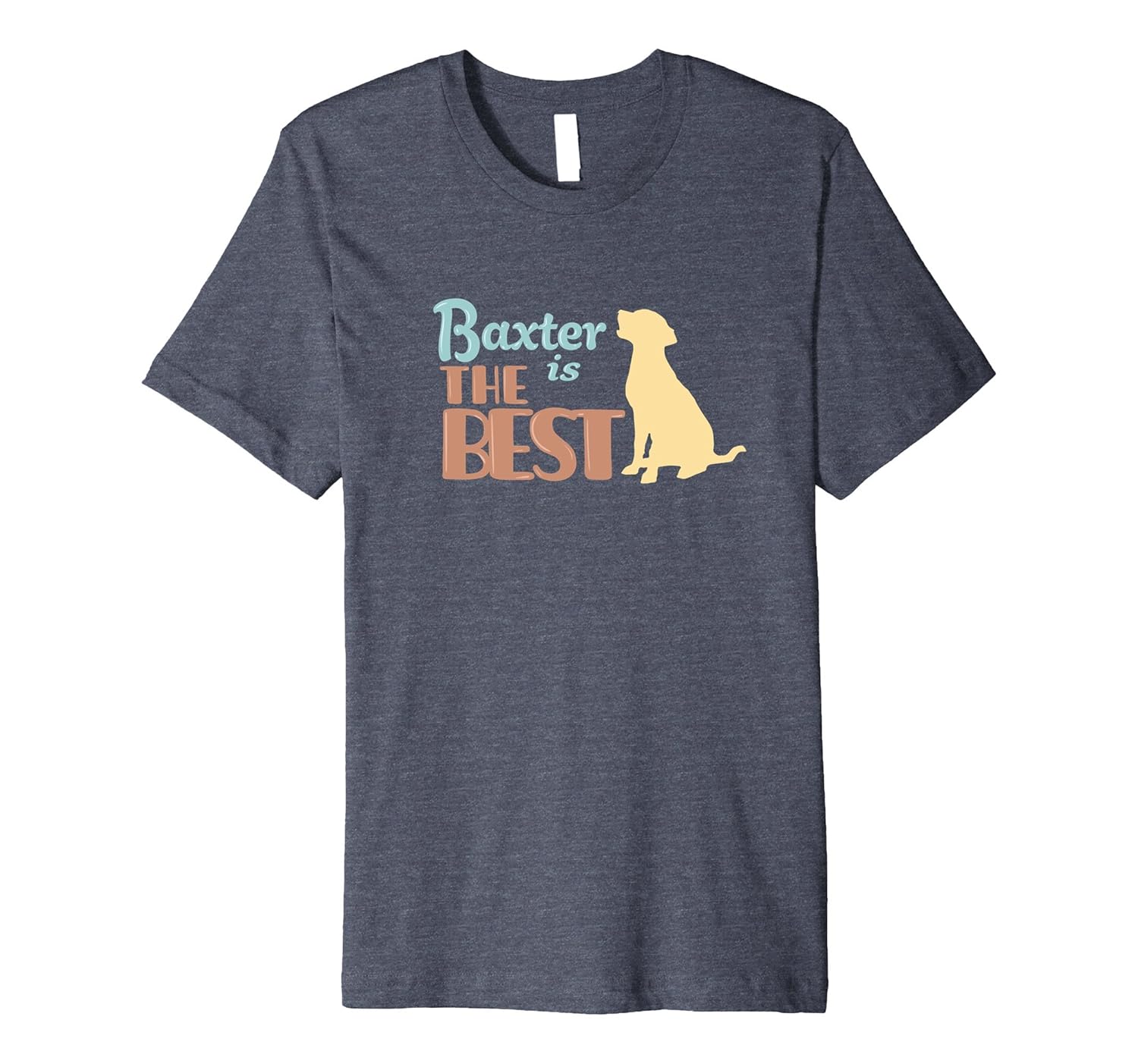 Solid colors: 100% Cotton; Heather Grey: 90% Cotton, 10% Polyester; All Other Heathers: 58% Cotton, 42% Polyester; Imported; Machine wash cold with like colors, dry low heat; Is your puppy named Baxter? Chances are they are the best dog ever because only dogs with the name Baxter are the best canines in the world!; Fit: Slim (consider ordering a larger size for a looser fit); This premium t-shirt is made of lightweight fine jersey fabric