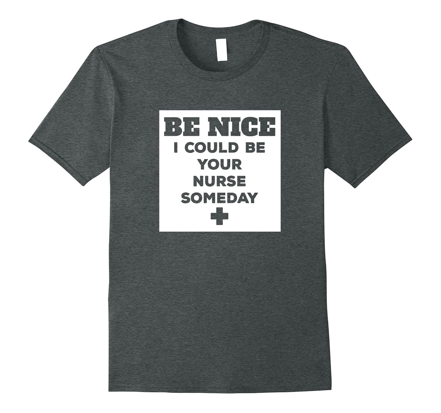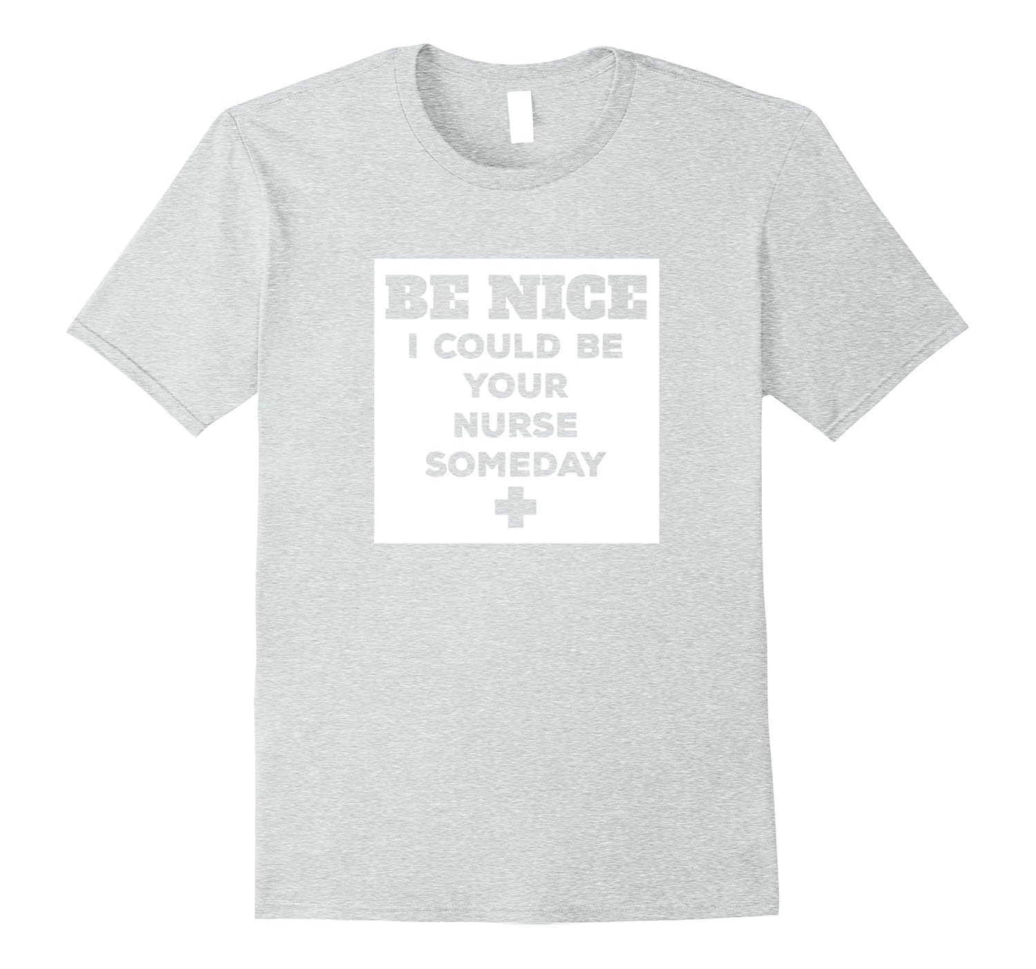 Solid colors: 100% Cotton; Heather Grey: 90% Cotton, 10% Polyester; All Other Heathers: 65% Cotton, 35% Polyester; Imported; Machine wash cold with like colors, dry low heat; Be Nice I Could Be Your Nurse Someday T Shirt for Nurses by MCMA; T Shirt for nurse, Nurse T Shirts, Humor T Shirts for Medical Professionals, Doctor T Shirt, Medical T Shirts, Nursing T Shirt, Nurse School Shirt, Fantastic Gift Idea!; Lightweight, Classic fit, Double-needle sleeve and bottom hem