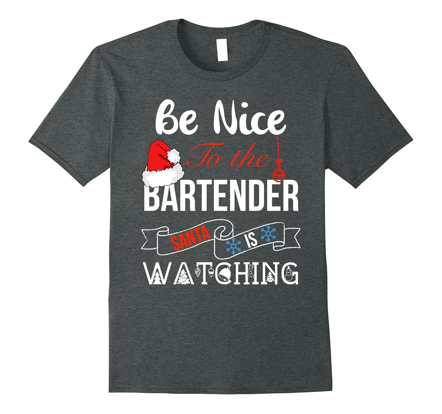 Solid colors: 100% Cotton; Heather Grey: 90% Cotton, 10% Polyester; All Other Heathers: 65% Cotton, 35% Polyester, Imported, Machine wash cold with like colors, dry low heat, Be Nice To The Bartender Santa Is Watching Christmas Shirt, Funny Bartender Christmas Shirt, Lightweight, Classic fit, Double-needle sleeve and bottom hem