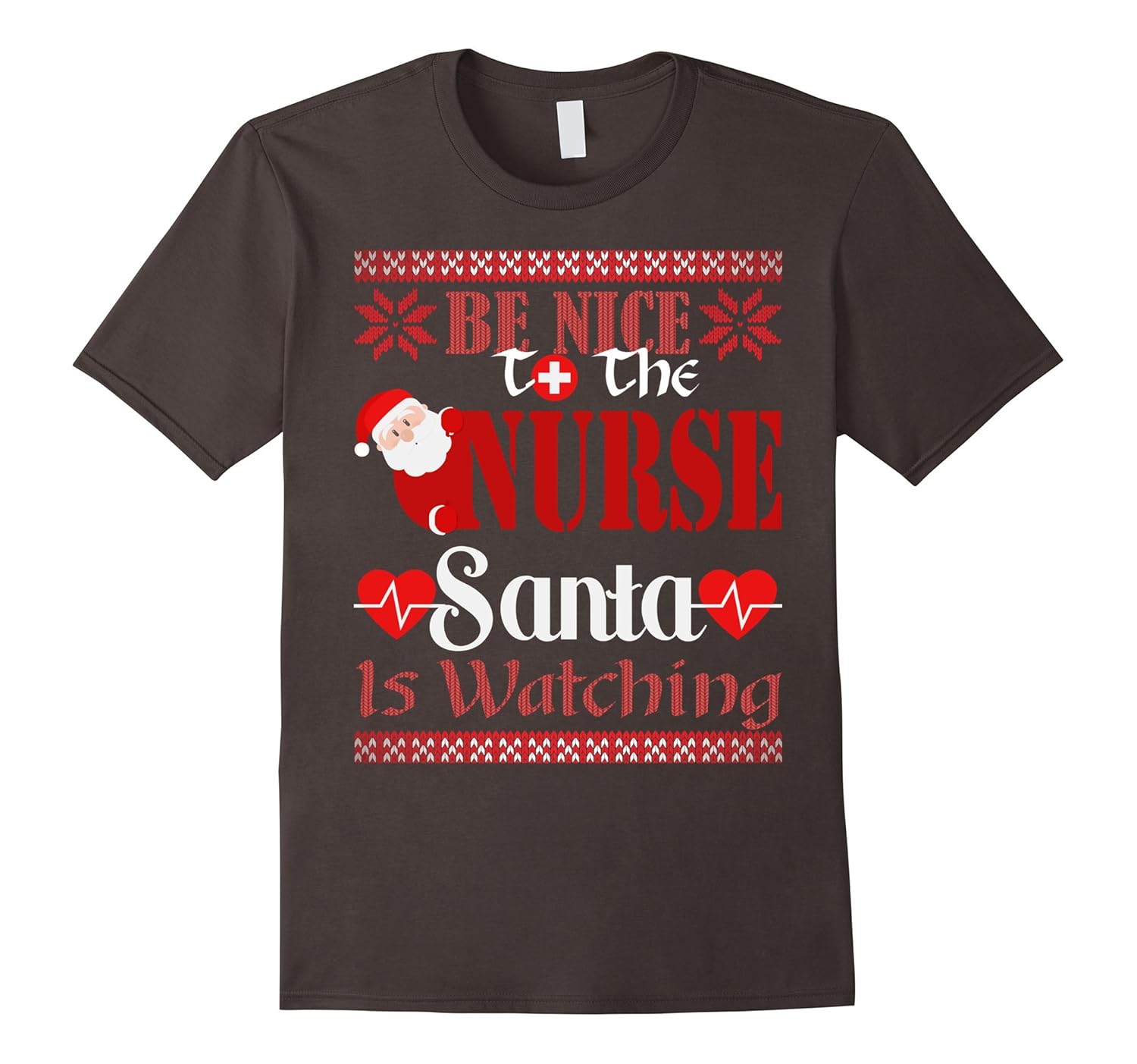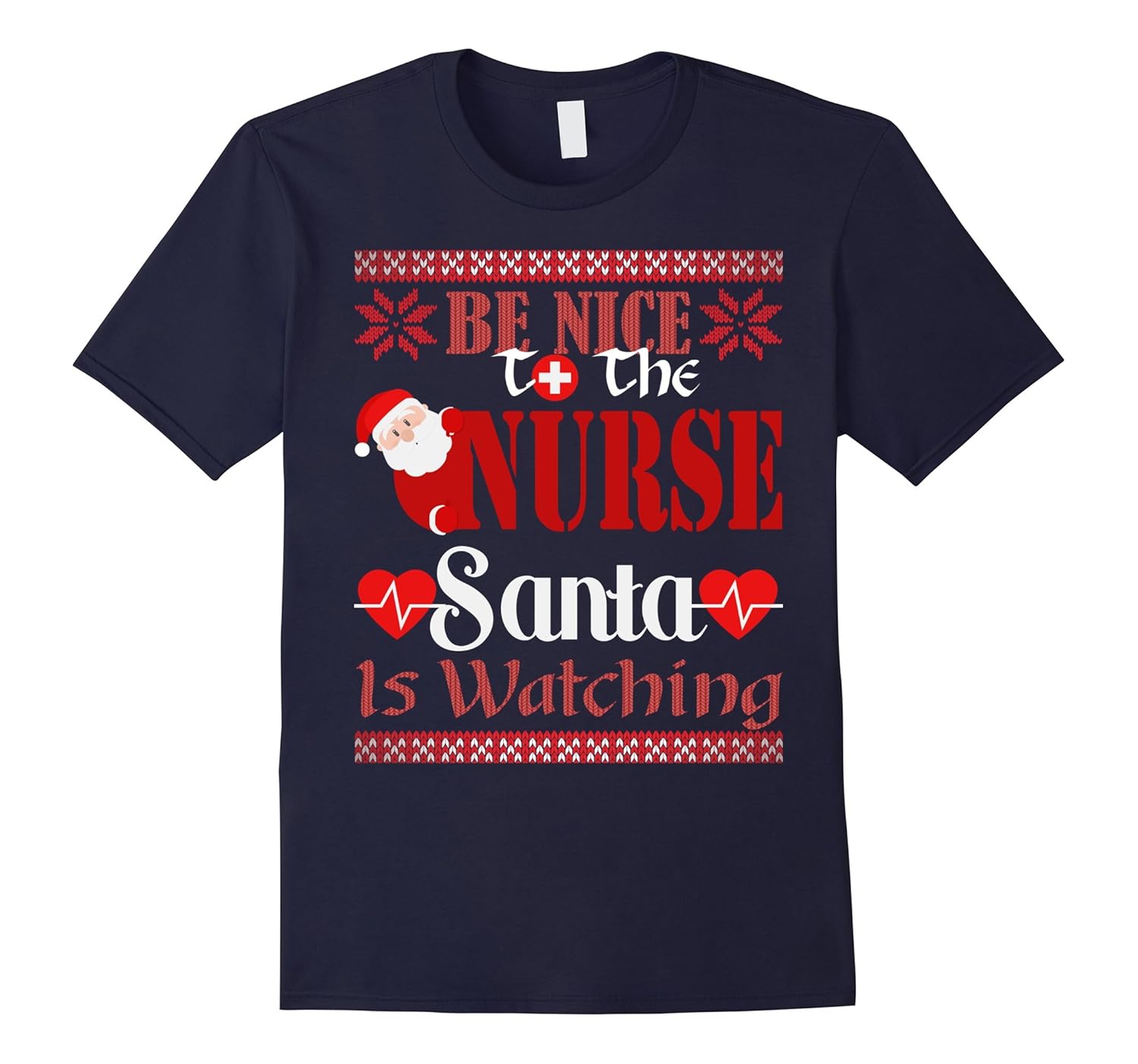 Be Nice To The Nurse Santa Is Watching Ugly Sweater T-Shirt-ANZ