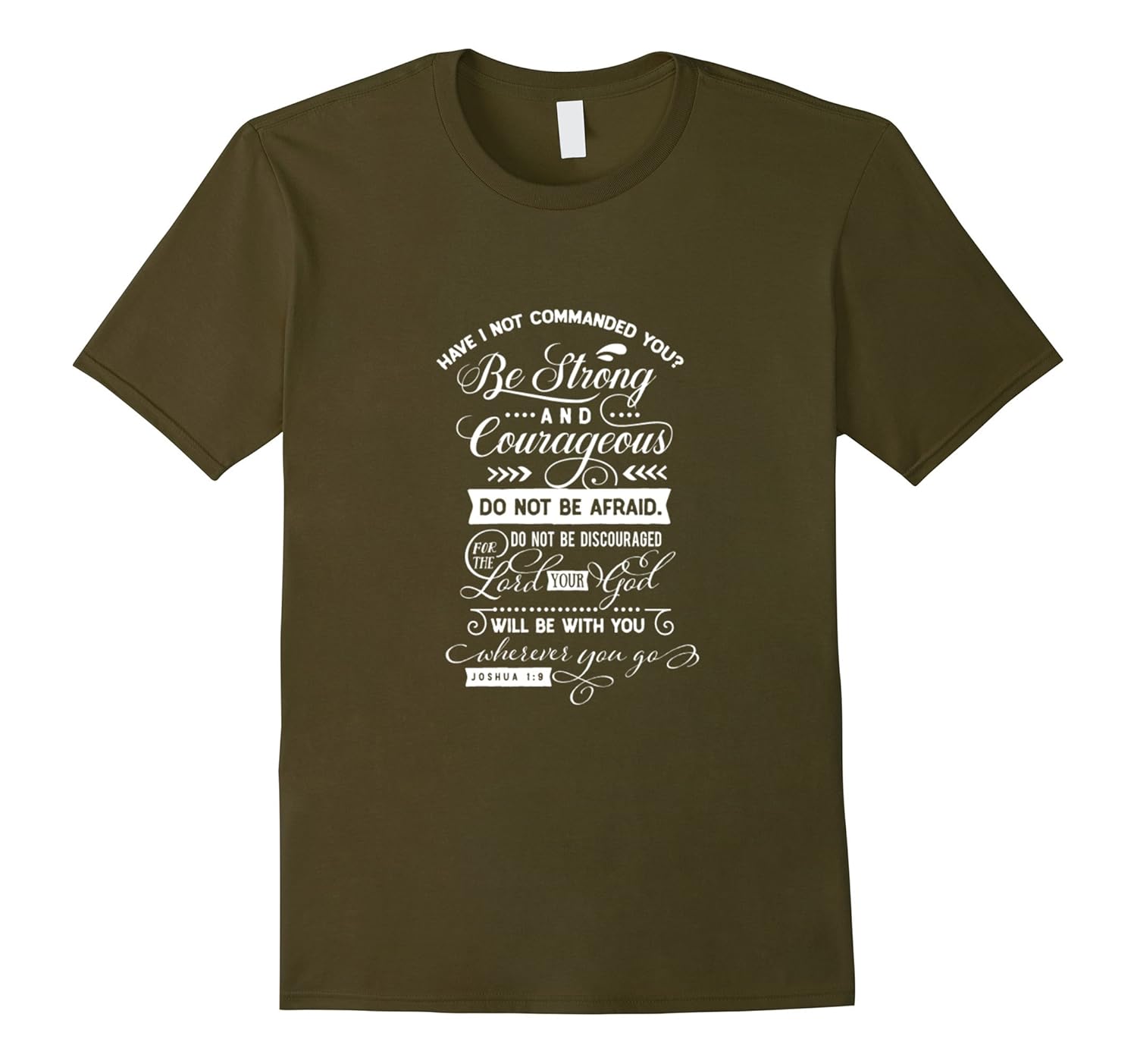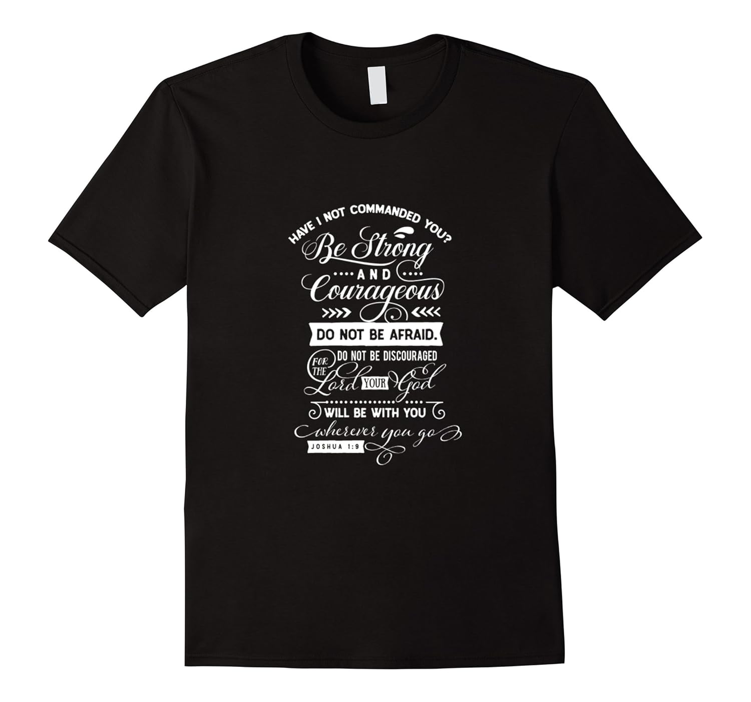 Solid colors: 100% Cotton; Heather Grey: 90% Cotton, 10% Polyester; All Other Heathers: 65% Cotton, 35% Polyester, Imported, Machine wash cold with like colors, dry low heat, Have not I commanded thee. Be strong and of a good courage; be not afraid, neither be thou dismayed: for the LORD thy God is with thee whithersoever thou goest. Joshua 1:9 KJV The Lord asked us to trust him This apparel reminds us of His love and care, Be strong and courageous sisters and brothers this inspirational tee shirt is created to renew and provide inspiration as you walk or run in faith. God is with us in time of trouble. Bible study approved, Lightweight, Classic fit, Double-needle sleeve and bottom hem