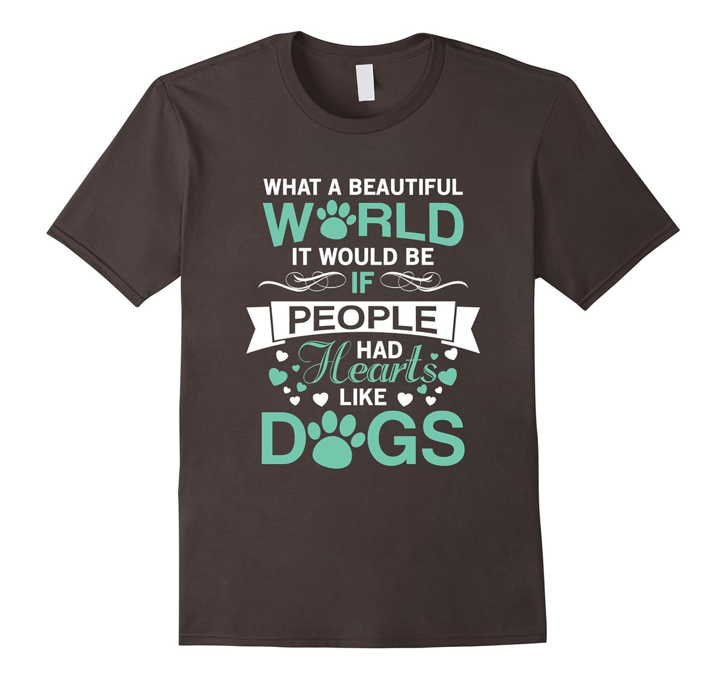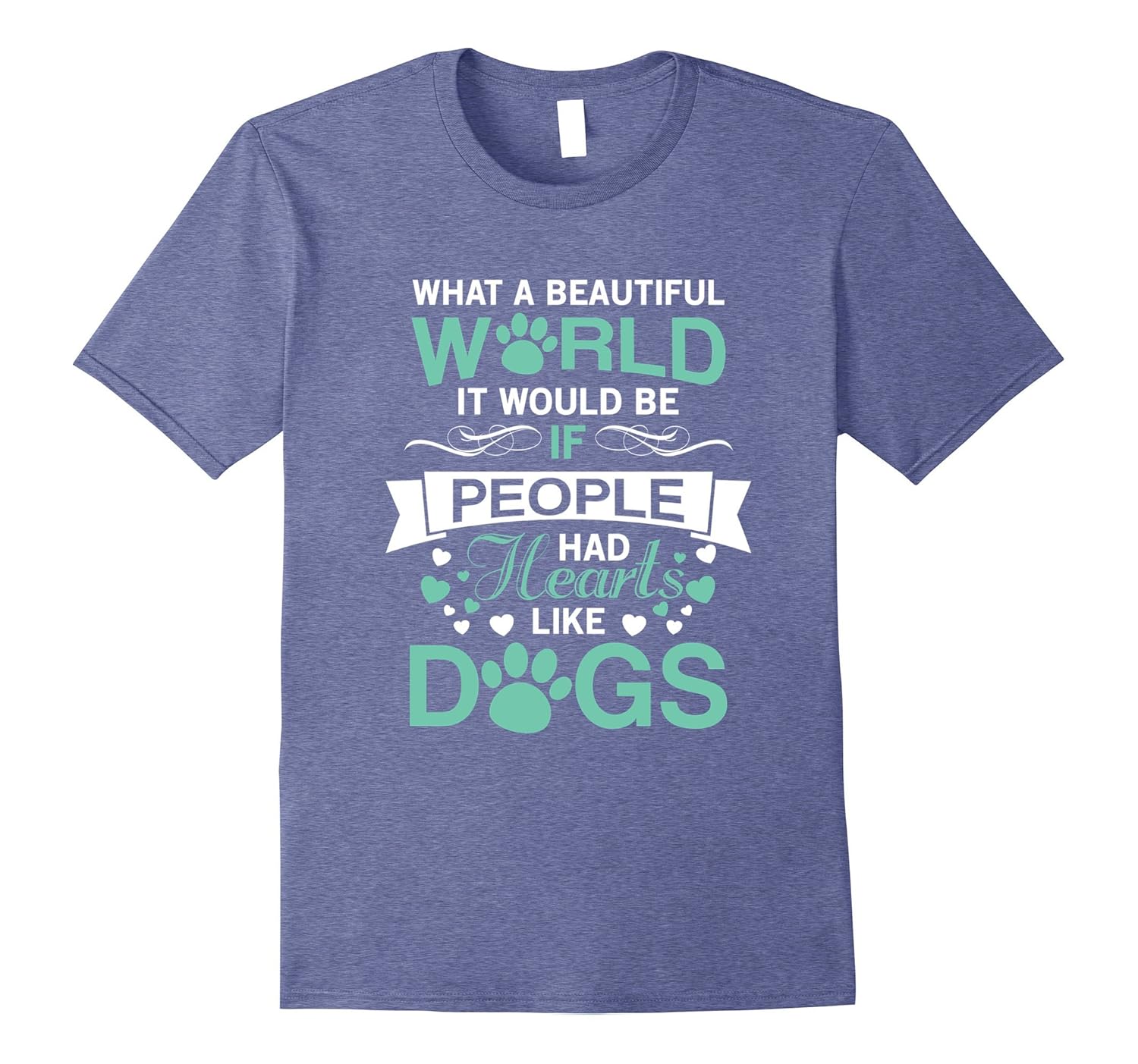 Solid colors: 100% Cotton; Heather Grey: 90% Cotton, 10% Polyester; All Other Heathers: 65% Cotton, 35% Polyester; Imported; Machine wash cold with like colors, dry low heat; Are you a dog lover or know someone who has pets instead of kids? This is the perfect shirt for the person who treats their dog like their children. What a beautiful world it would be if people had hearts like dogs.; Get this cool witty funny sarcastic cute hip saying slogan quote pun joke trendy vintage retro t-shirt for girls, for boys, for men, for nerds, for women, for mom, dad, sister, brother, wife, husband, son, teen, kids, child, daughter, grandma and grandpa!; Lightweight, Classic fit, Double-needle sleeve and bottom hem