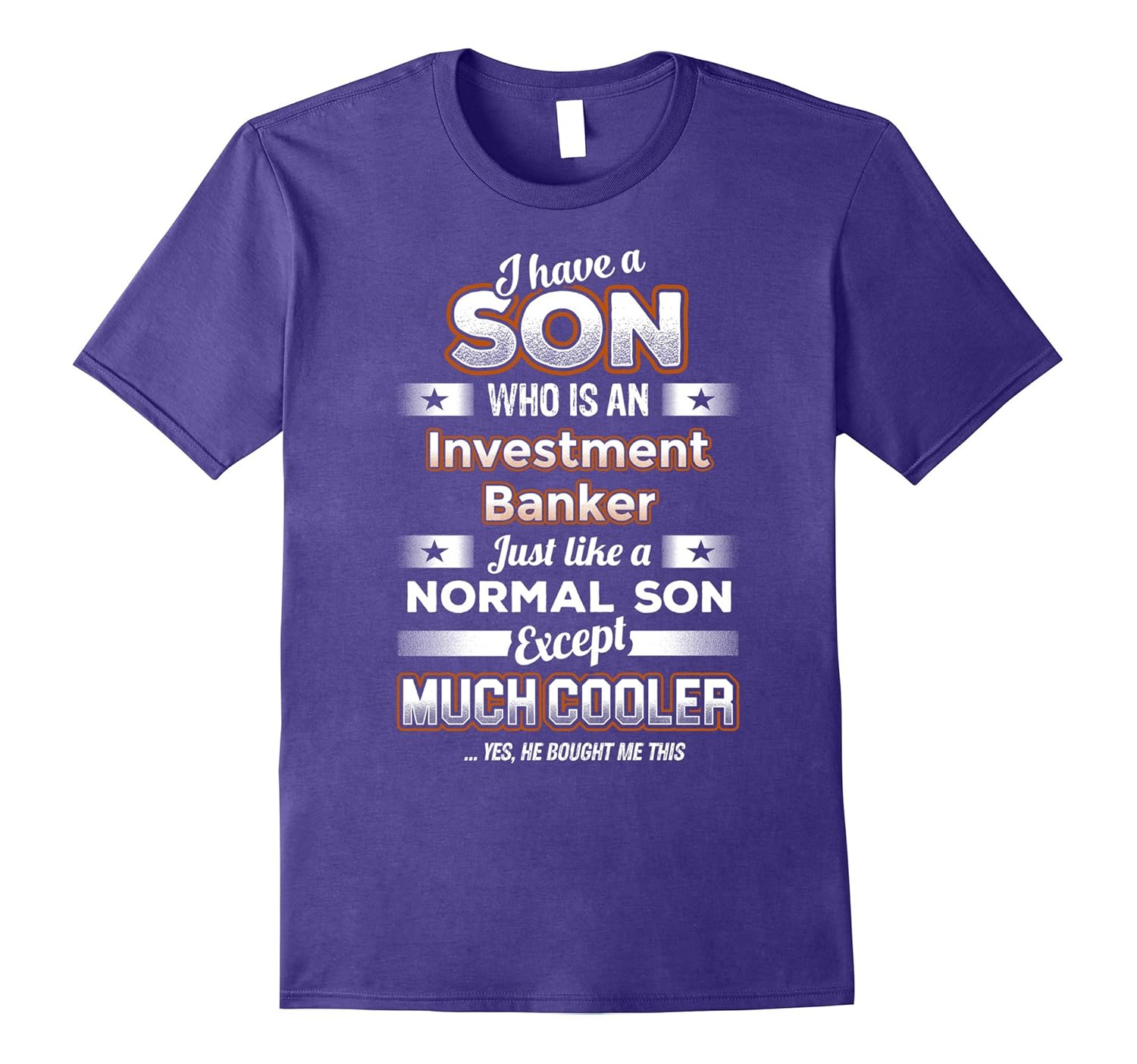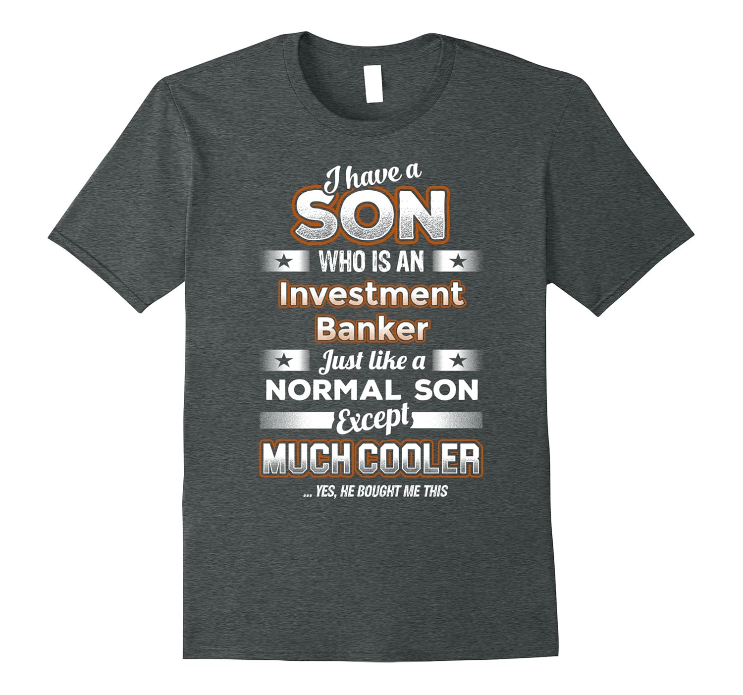 Solid colors: 100% Cotton; Heather Grey: 90% Cotton, 10% Polyester; All Other Heathers: 50% Cotton, 50% Polyester; Imported; Machine wash cold with like colors, dry low heat; Original design by BeeTee. Click brand name BeeTee – Investment Banker T-Shirt for more great designs. I Have A Son Who Is An Investment Banker, Just Like A Normal Son, Except Much Cooler … Yes, He Bought Me This; This investment banking t-shirt sets your parents apart and shows how unique they are. Get this custom apparel today to show how much your family means to you. Great for funny birthday gifts, unique Fathers day presents or special gifts for Mothers day; Lightweight, Classic fit, Double-needle sleeve and bottom hem