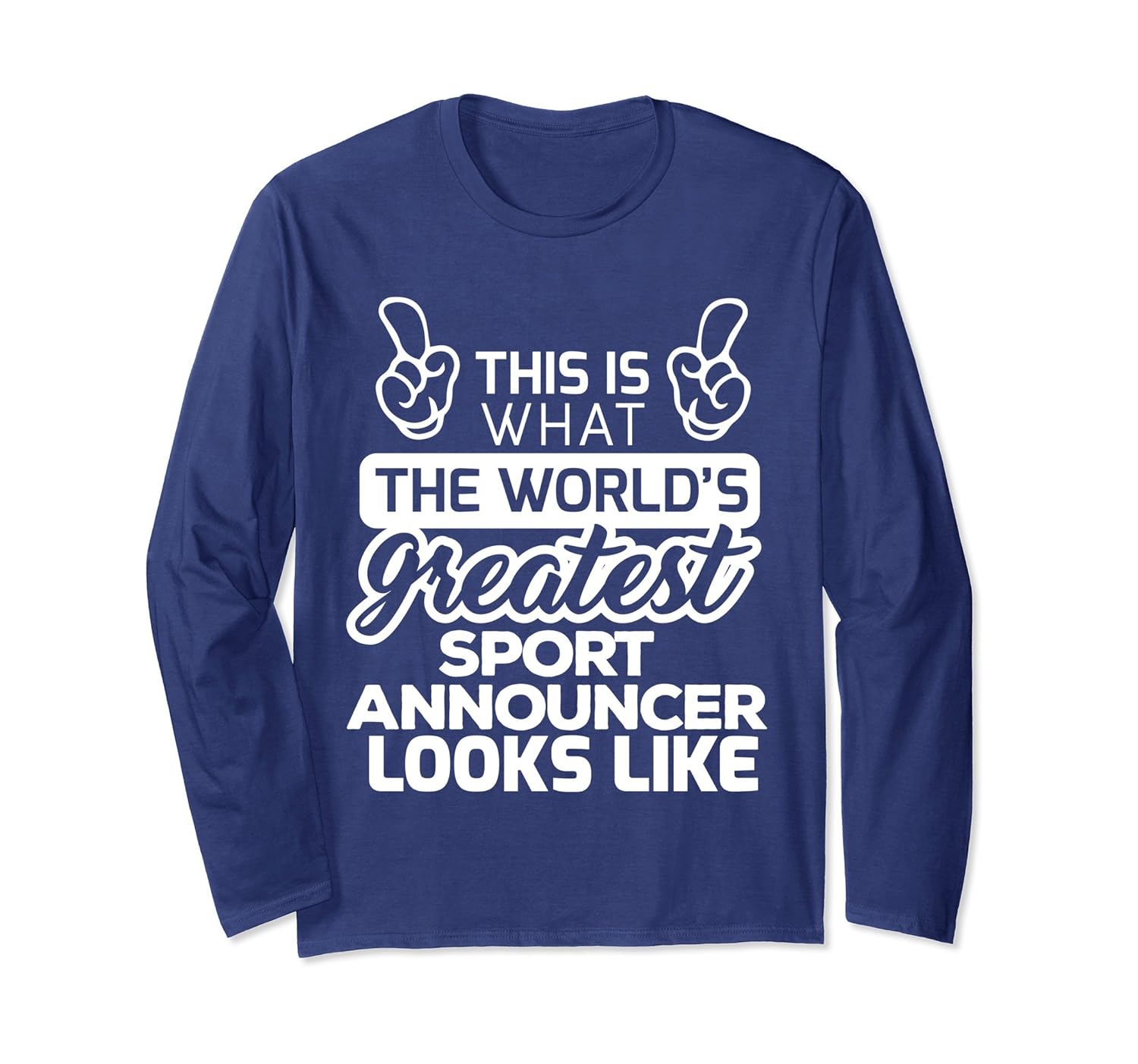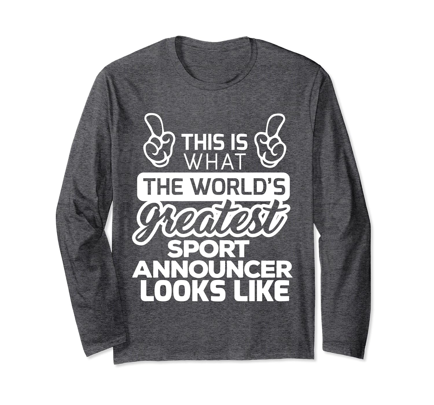 Solid colors: 100% Cotton; Heather Grey: 90% Cotton, 10% Polyester; All Other Heathers: 50% Cotton, 50% Polyester; Imported; Machine wash cold with like colors, dry low heat; Are you a great sports announcer? This announcer l/s t shirt is for you! Wear this sports lover l/s tee shirt while commentating in a basketball game, boxing, volleyball game, soccer game, and other sports game.; This Is What The Worlds Greatest Sport Announcer Looks Like Best Sports Announcer Ever Long Sleeve Shirt is a perfect sports gift for ring announcer, radio sports announcer, tv announcer, or any sports announcer out there.; Lightweight, Classic fit, Double-needle sleeve and bottom hem