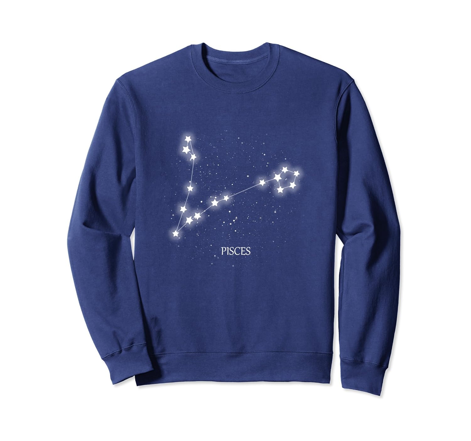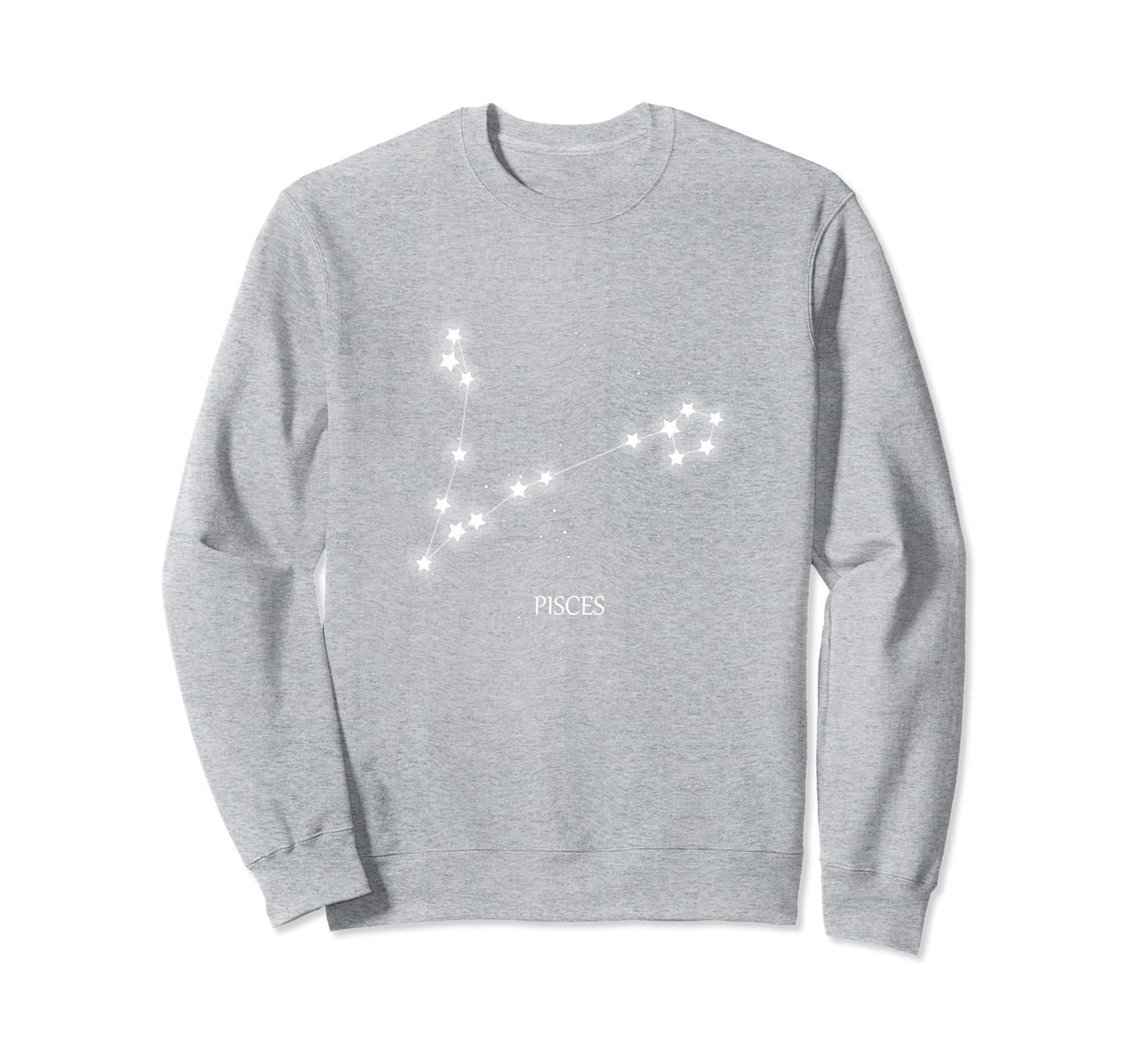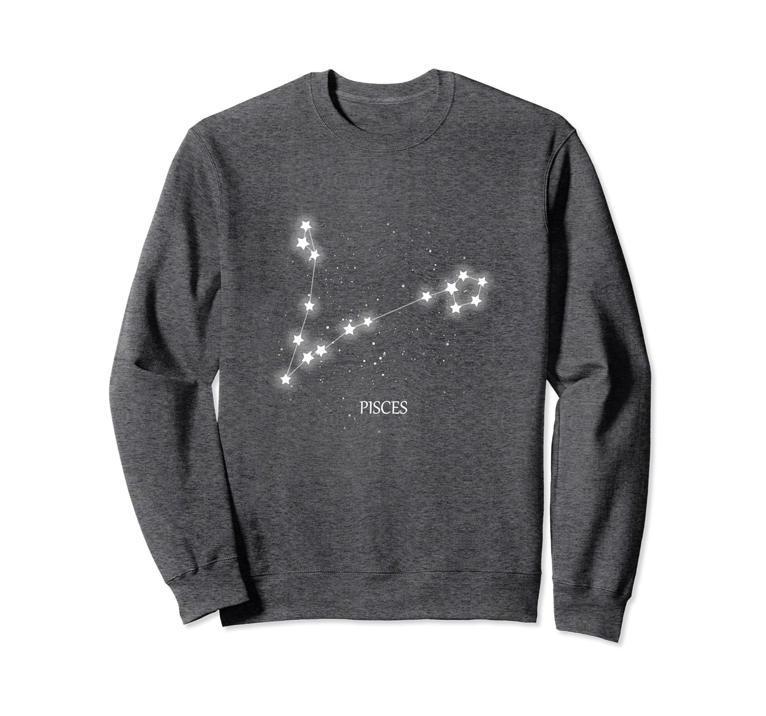 Solid colors: 80% Cotton, 20% Polyester; Heather Grey: 78% Cotton, 22% Poly; Dark Heather: 50% Cotton, 50% Polyester; Imported; Machine wash cold with like colors, dry low heat; Pisces men, women and teens will put their astronomy minds to the test with this awesome constellation sweatshirt. Perfect for that Pisces mom, dad, sister, brother, wife, husband, aunt, uncle, son, daughter, grandma, grandpa or friend in your life.; A cool sweatshirt for who is into horoscopes and the zodiac. This is a shirt to wear to the gym, school, work or star-gazing on a beautiful night. The official Pisces sweatshirt is also a great gift idea for Mothers Day, Fathers Day, Christmas or birthday.; 8.5 oz, Classic fit, Twill-taped neck