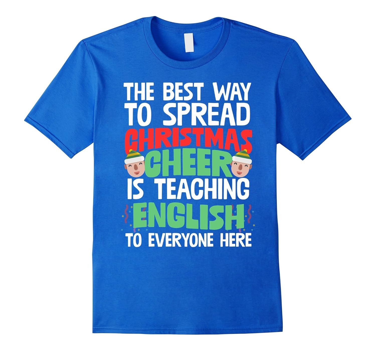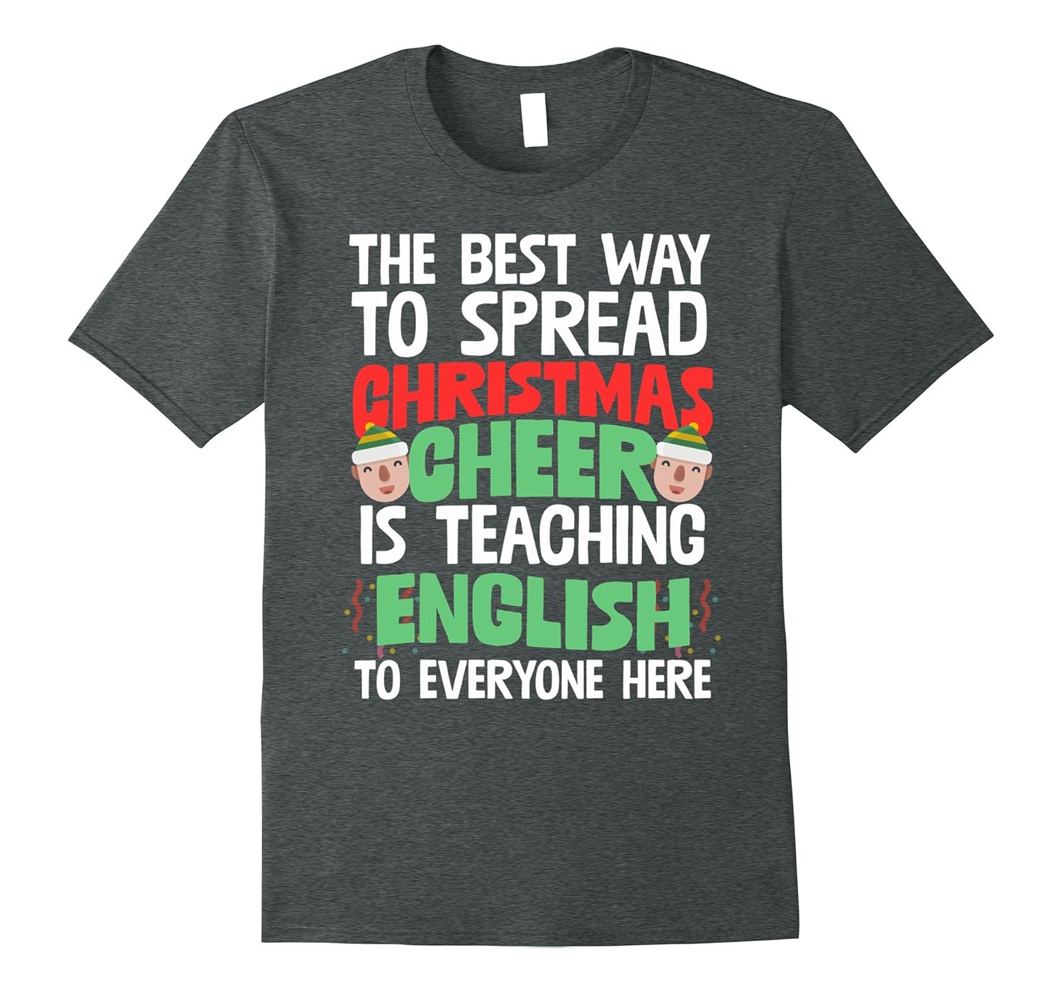Solid colors: 100% Cotton; Heather Grey: 90% Cotton, 10% Polyester; All Other Heathers: 65% Cotton, 35% Polyester, Imported, Machine wash cold with like colors, dry low heat, The Best Way To Spread Christmas Cheer Is Teaching English To Everyone Here T-Shirt – Funny Teacher Christmas Winter Break With Elf Confetti Humor Sayings Tee, Great gift tshirt for a birthday, Christmas and any other gift giving occasion, Lightweight, Classic fit, Double-needle sleeve and bottom hem