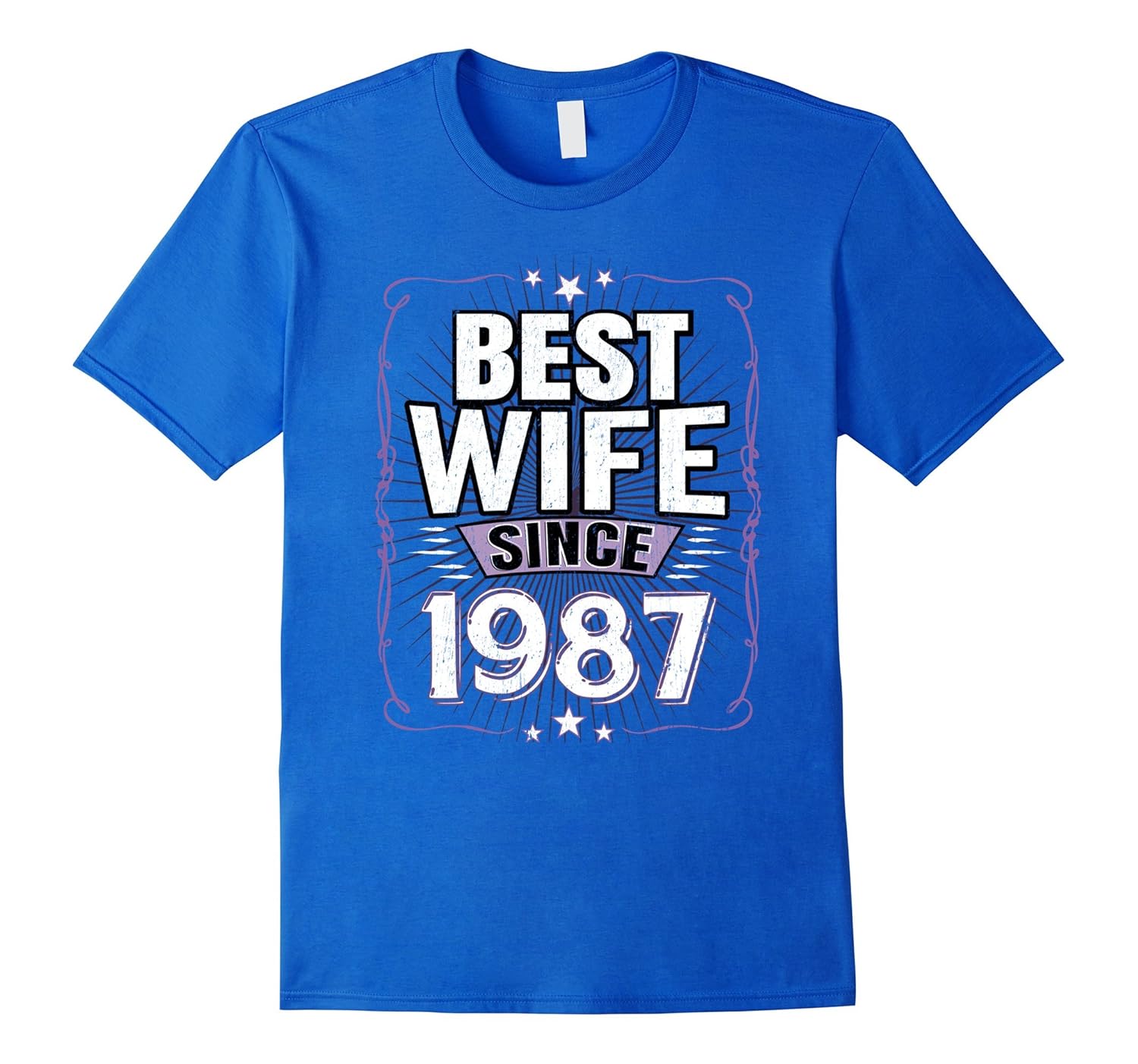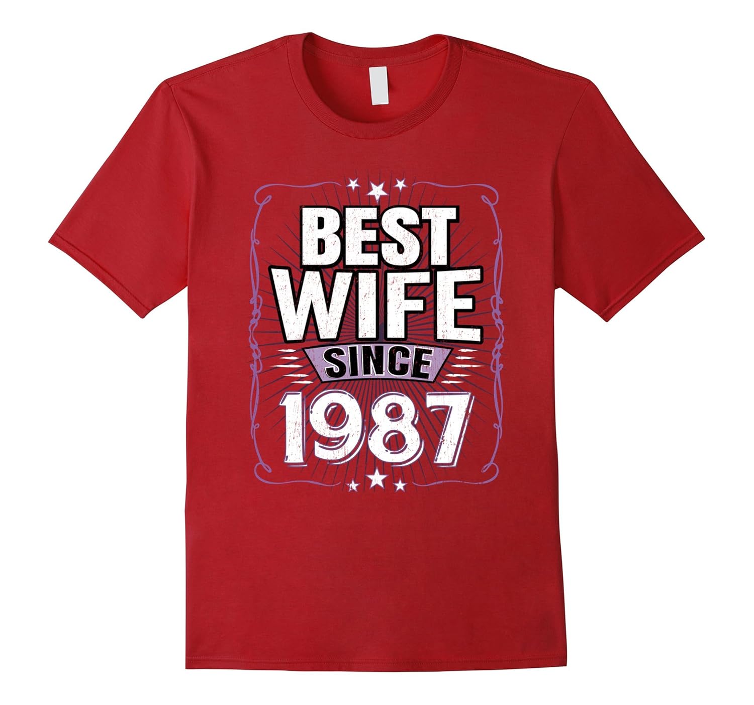 Solid colors: 100% Cotton; Heather Grey: 90% Cotton, 10% Polyester; All Other Heathers: 65% Cotton, 35% Polyester, Imported, Machine wash cold with like colors, dry low heat, Get your humor mode on with this cool vintage retro tee that reads Best Wife Since 1987 in distressed text! A funny and; sarcastic outfit moms will love to show what an awesome mother she”s been for 30 years! Stylish to wear during any occasion!, A great Christmas present, Mother”s or a fun marriage gag gift idea for your amazing mommy, aunt, daughter, sister or grandma! A witty 30th wedding anniversary celebration gift for her she”ll love wearing! Get this lovely tshirt for your romantic partner!, Lightweight, Classic fit, Double-needle sleeve and bottom hem