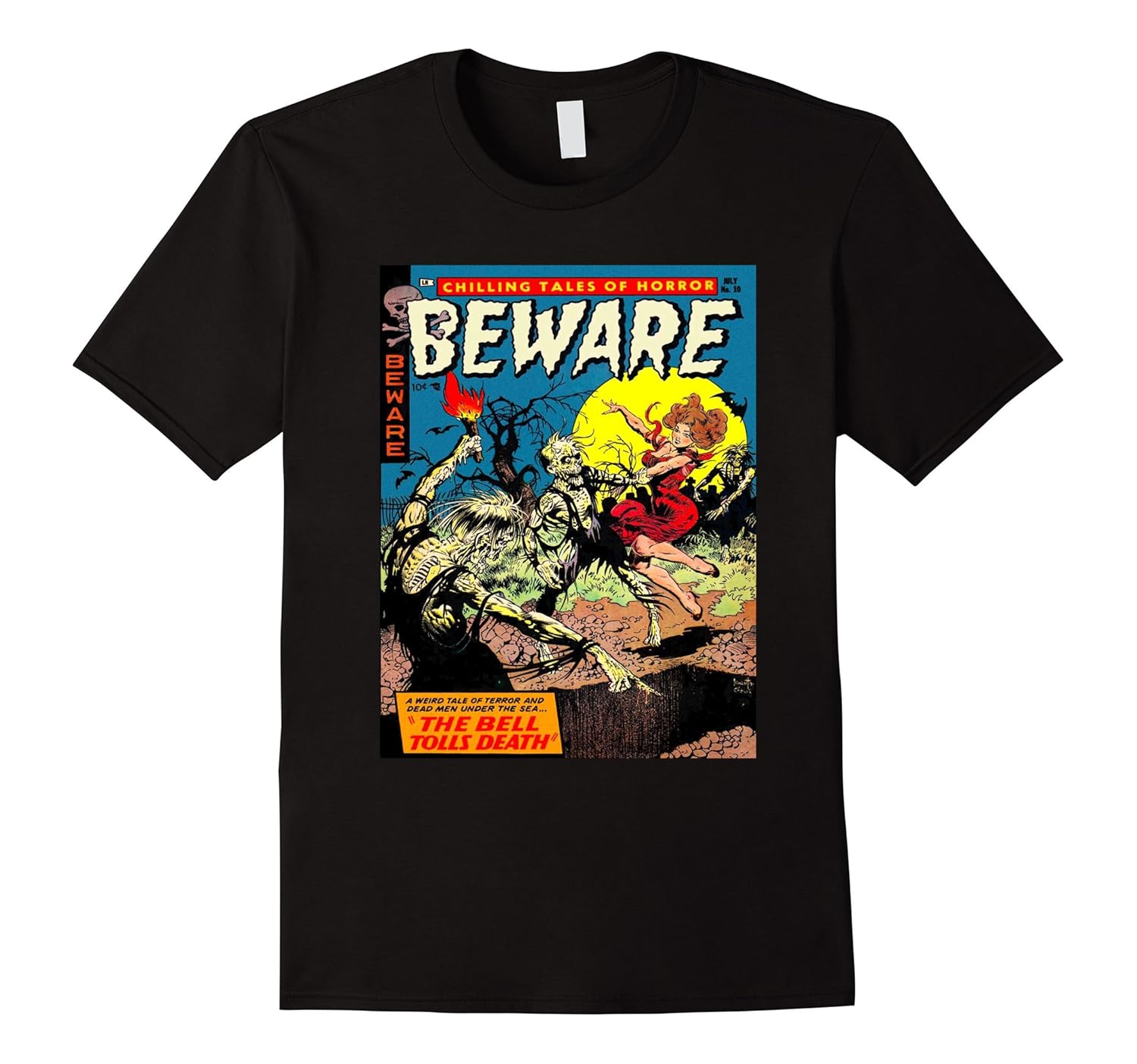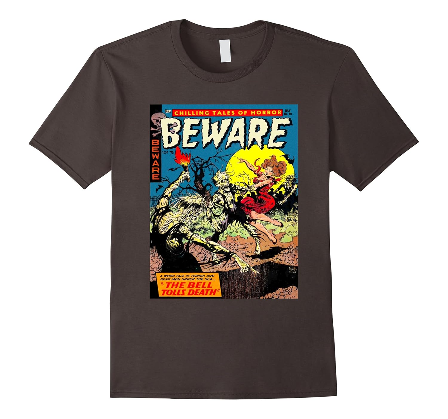 Solid colors: 100% Cotton; Heather Grey: 90% Cotton, 10% Polyester; All Other Heathers: 65% Cotton, 35% Polyester, Imported, Machine wash cold with like colors, dry low heat, Vintage Horror Zombie Comic Book T Shirt. Golden age, silver age, classic, vintage horror comic book art. Great for fans of classic horror comics, comic book art, comic book t shirt, vintage comic book, scary comic books, ghost stories, halloween, swamp monsters, classic horror films, and vintage horror movie posters. Lightweight, Classic fit, Double-needle sleeve and bottom hem