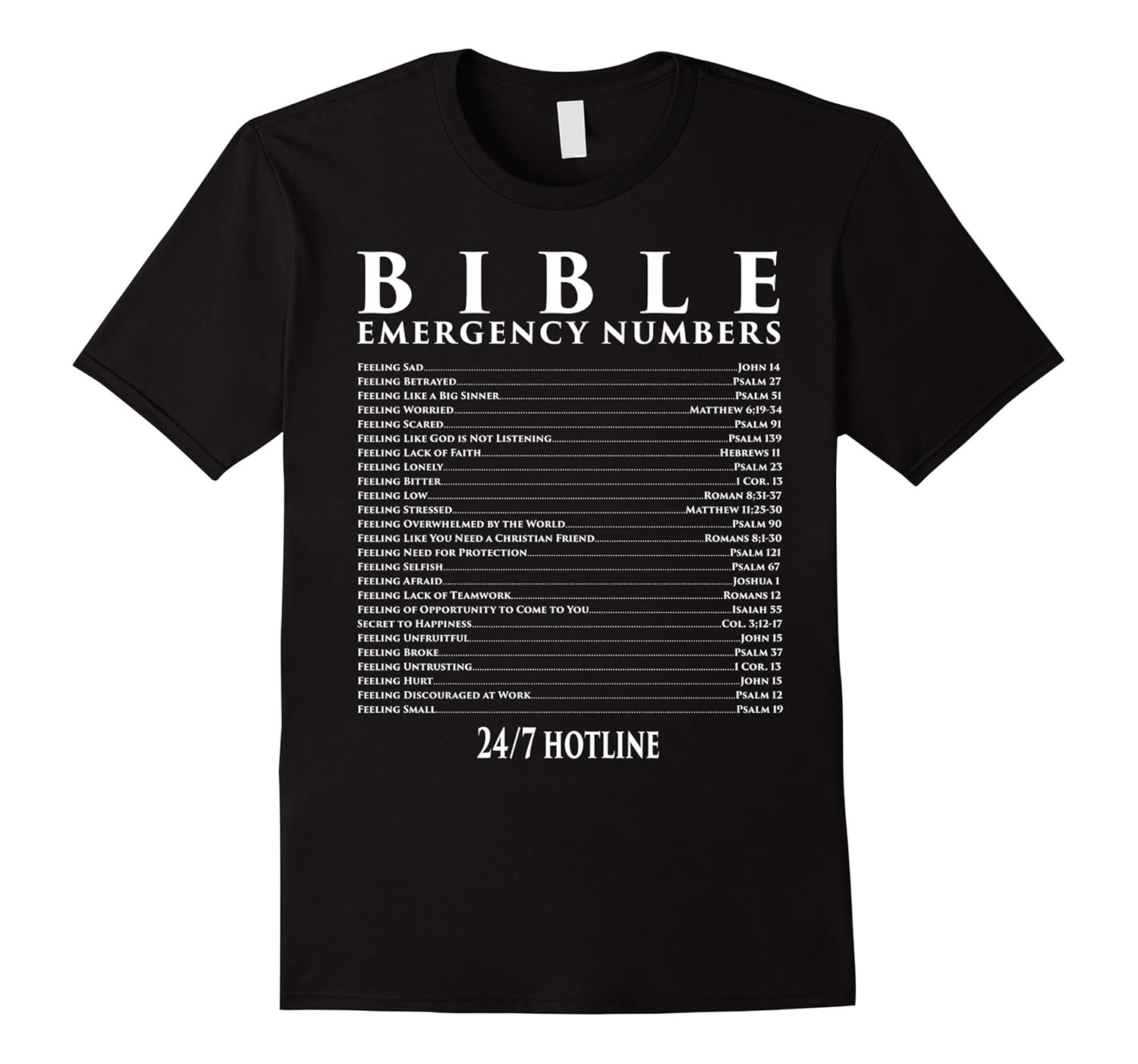 Solid colors: 100% Cotton; Heather Grey: 90% Cotton, 10% Polyester; All Other Heathers: 65% Cotton, 35% Polyester, Imported, Machine wash cold with like colors, dry low heat, Cool Christian T-Shirts – Bible Emergency Hotline Numbers. Bible scripture verses for when you need it most! Feeling sad, feeling broke, or lonely. There”s a verse here for that. Great gift for Christmas, Church goer, concert, Pastor, Church elder, minister, youth leader, preacher, for Mothers Day for Mom, Fathers Day for Dad, 4th of July, anniversary, graduation, Birthday, Lightweight, Classic fit, Double-needle sleeve and bottom hem