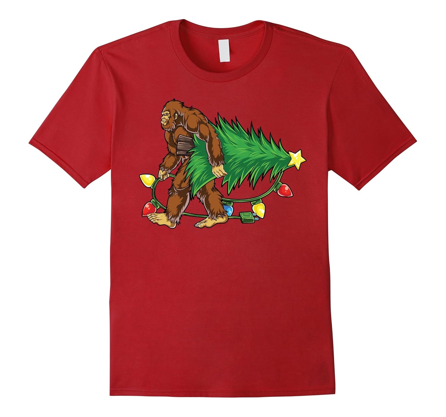 Bigfoot Carrying Christmas Tree T Shirt Sasquatch Santa Gift-ANZ
