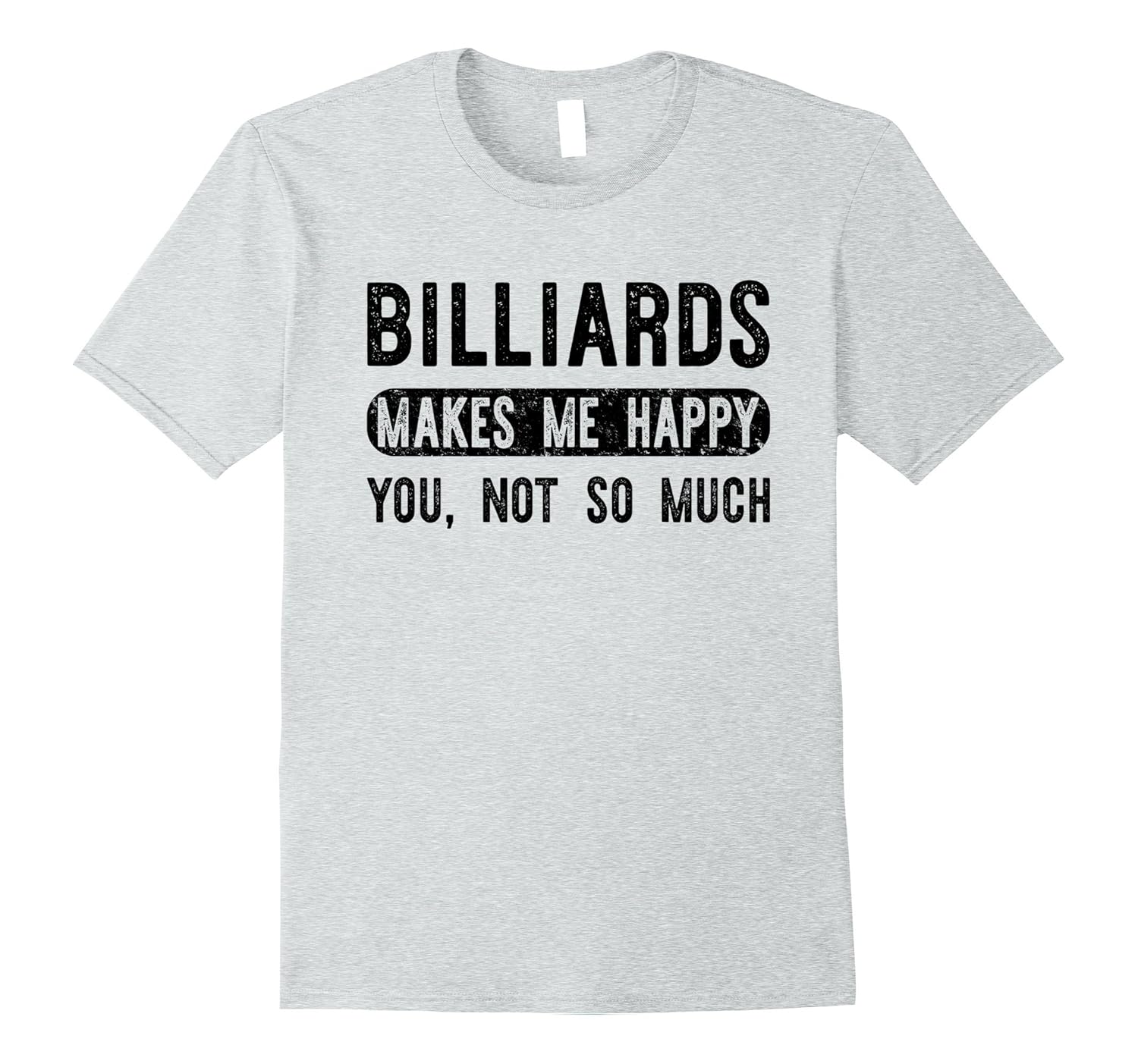 Solid colors: 100% Cotton; Heather Grey: 90% Cotton, 10% Polyester; All Other Heathers: 65% Cotton, 35% Polyester, Imported, Machine wash cold with like colors, dry low heat, Billiards Makes Me Happy You Not So Much – Funny Pool Player T-shirt, Great gift for anyone that loves playing bar games, Lightweight, Classic fit, Double-needle sleeve and bottom hem