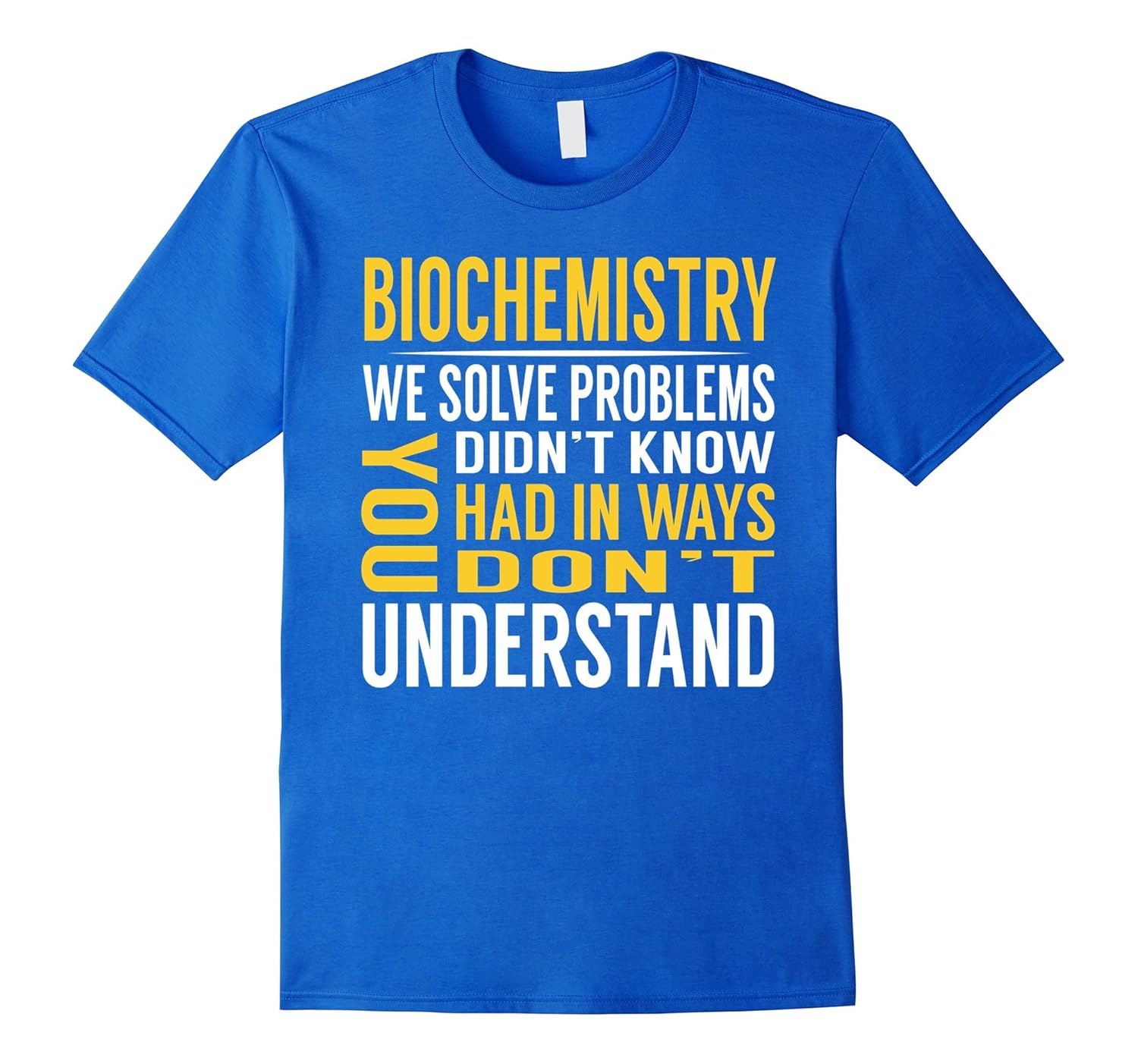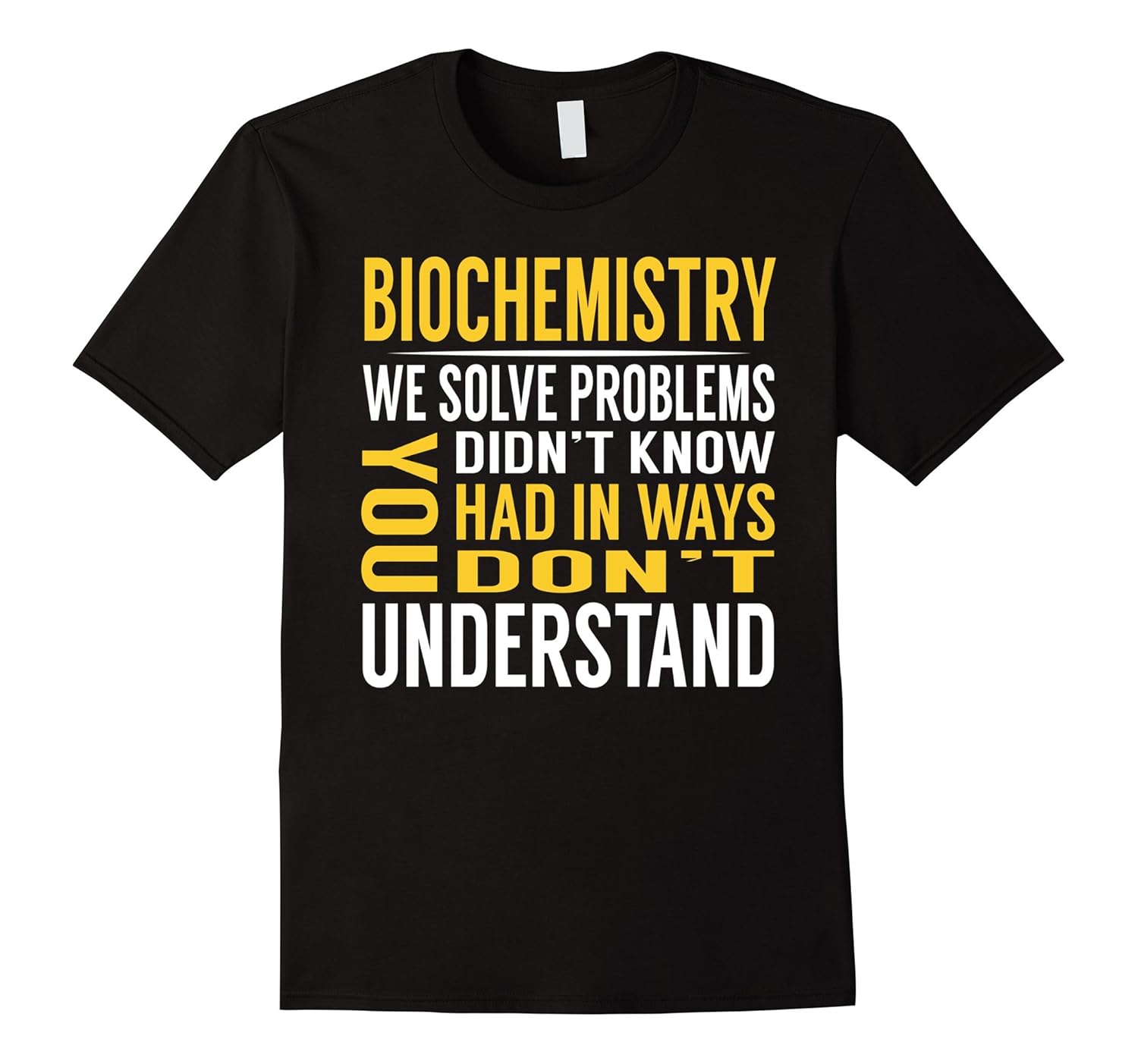 Solid colors: 100% Cotton; Heather Grey: 90% Cotton, 10% Polyester; All Other Heathers: 65% Cotton, 35% Polyester, Imported, Machine wash cold with like colors, dry low heat, Biochemistry funny apparel novelty accessories costume outfits farbic dress shirt tshirt gifts funny ideas for women men, Biochemistry We Solve Problems You Didn”t Know You Had In Ways You Don”t Understand TShirt, Great gift shirt tshirt for Biochemistry, Lightweight, Classic fit, Double-needle sleeve and bottom hem