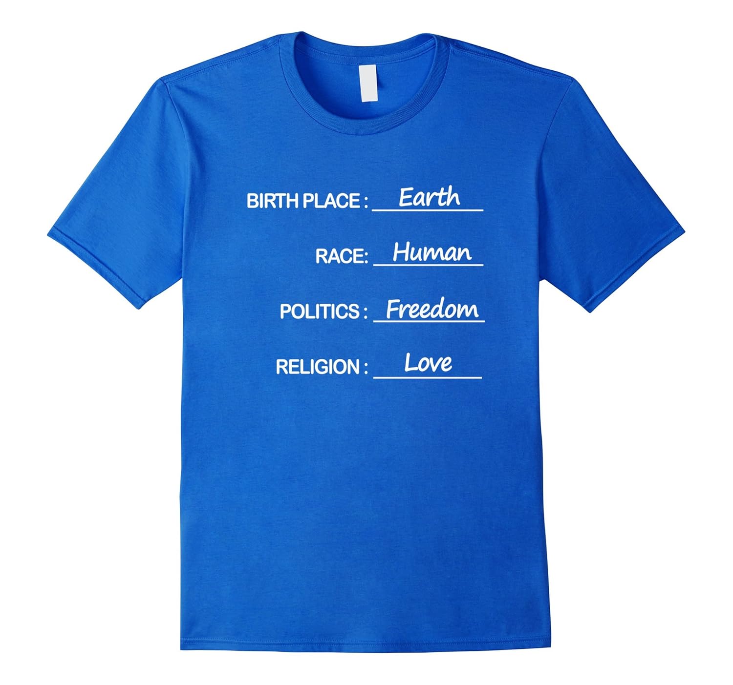Birth Place Earth Race Human Politics Freedom Love T Shirt-ANZ