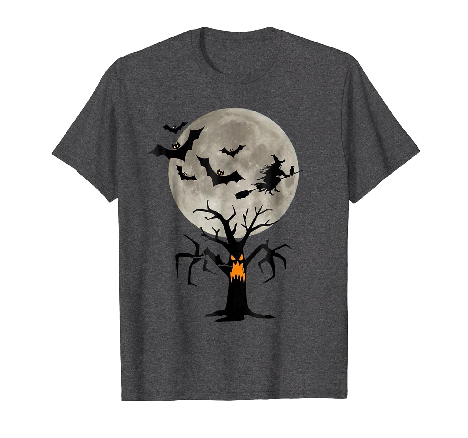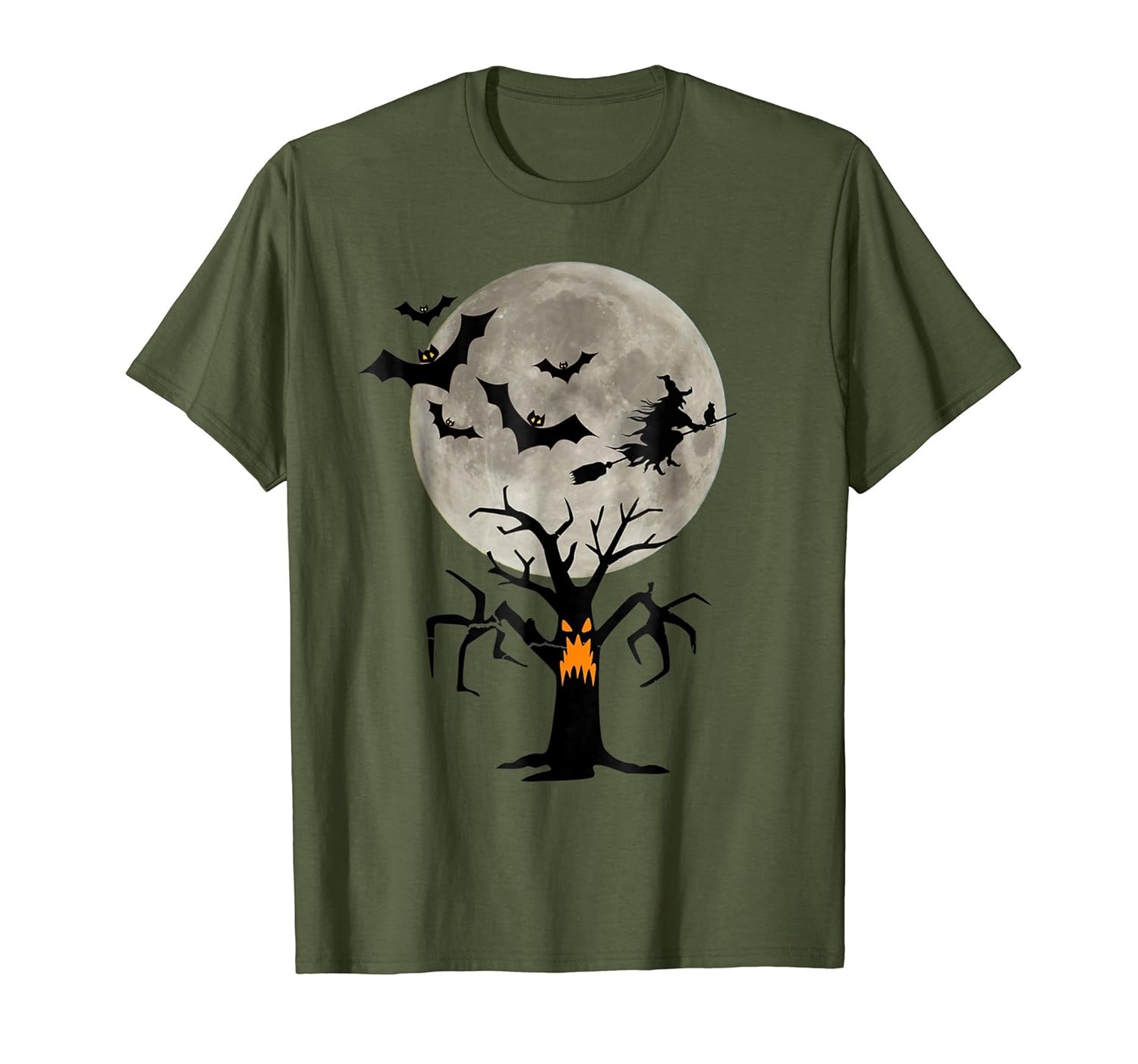 Solid colors: 100% Cotton; Heather Grey: 90% Cotton, 10% Polyester; All Other Heathers: 50% Cotton, 50% Polyester; Imported; Machine wash cold with like colors, dry low heat; Boo Halloween 2018 T-Shirt With Flying Bats And Witch Black Cats And Spooky Tree With Jack O Lantern Face.; Looking forward to planning your costume and decorations? Love a Halloween party and still go out to Trick or Treat? Favorite holiday? Love ghosts, bats, witches, skeletons? Like homemade costumes? This is for you! Makes a great gift!; Lightweight, Classic fit, Double-needle sleeve and bottom hem