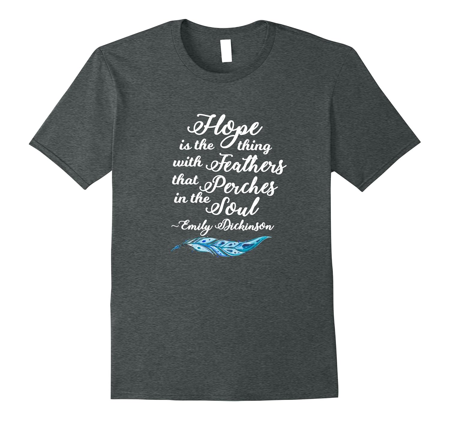 Solid colors: 100% Cotton; Heather Grey: 90% Cotton, 10% Polyester; All Other Heathers: 65% Cotton, 35% Polyester, Imported, Machine wash cold with like colors, dry low heat, Poetry Literary Gifts – Emily Dickinson quote t shirt is a favorite of bookworms, book lovers, poem writers, English teachers, Librarians, book clubs, trauma survivors, therapists, and; counselors. Our tshirt is a perfect uplifting gift. Hope is the thing with feathers that perches in the soul! Bibliophiles, book nerds, and; poetry lovers, get our inspirational quote t-shirt. Make it a bookish gift for her. Lightweight, Classic fit, Double-needle sleeve and bottom hem