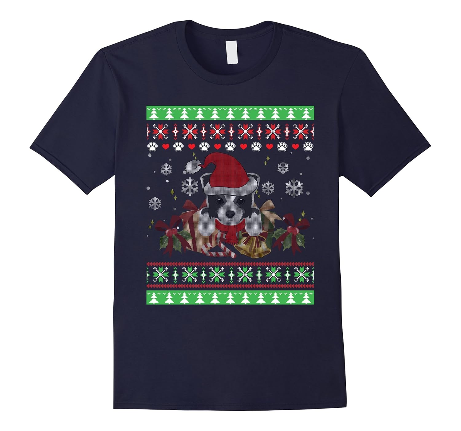 Border Collie Santa Hat Ugly Christmas Sweater T Shirt-ANZ