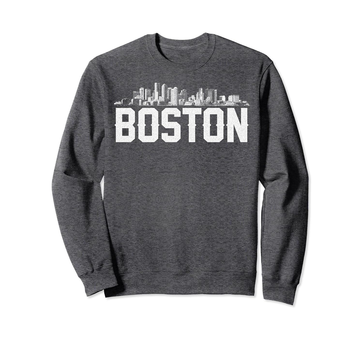 Solid colors: 80% Cotton, 20% Polyester; Heather Grey: 78% Cotton, 22% Poly; Dark Heather: 50% Cotton, 50% Polyester; Imported; Machine wash cold with like colors, dry low heat; Exclusive mens and womens Boston MA skyline sweatshirt souvenir gift design; These crewneck sweatshirts make best gifts for Boston clothing lovers; 8.5 oz, Classic fit, Twill-taped neck