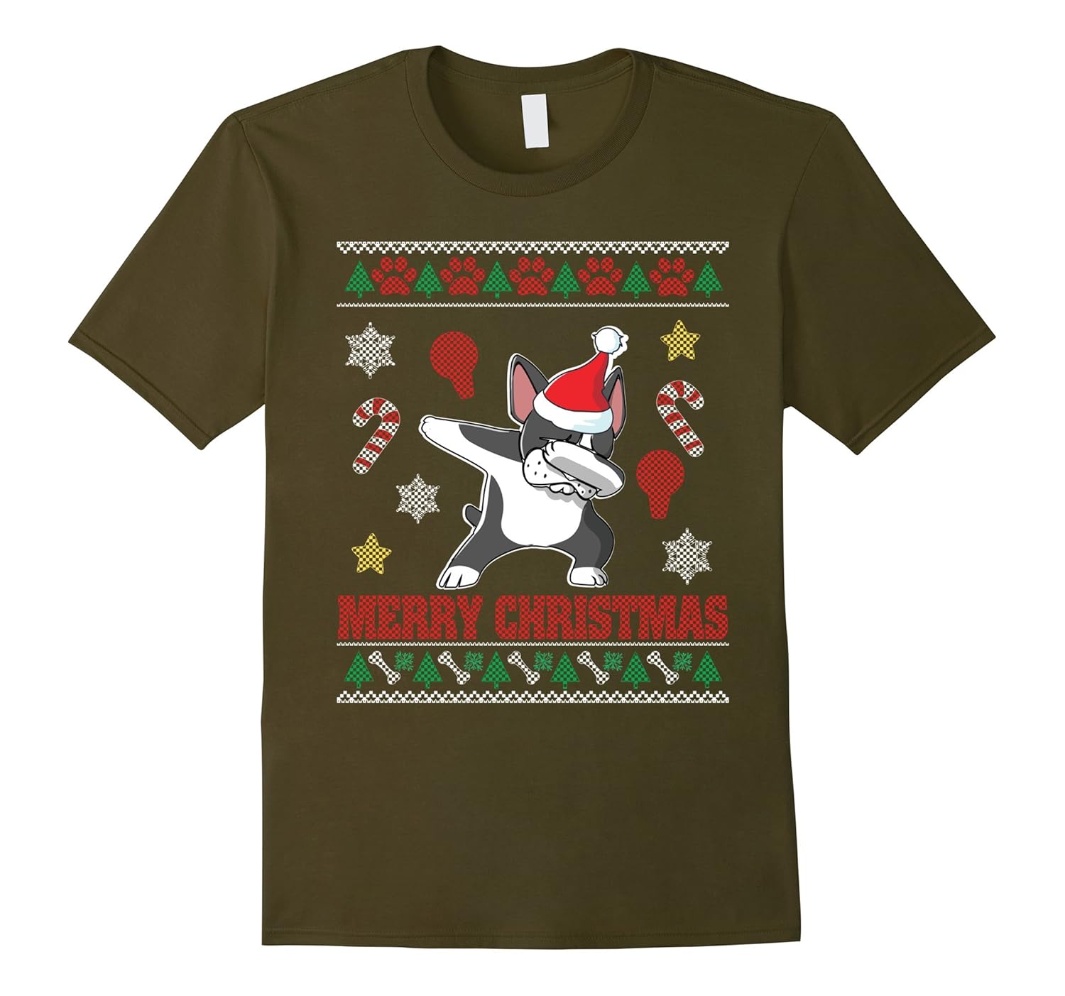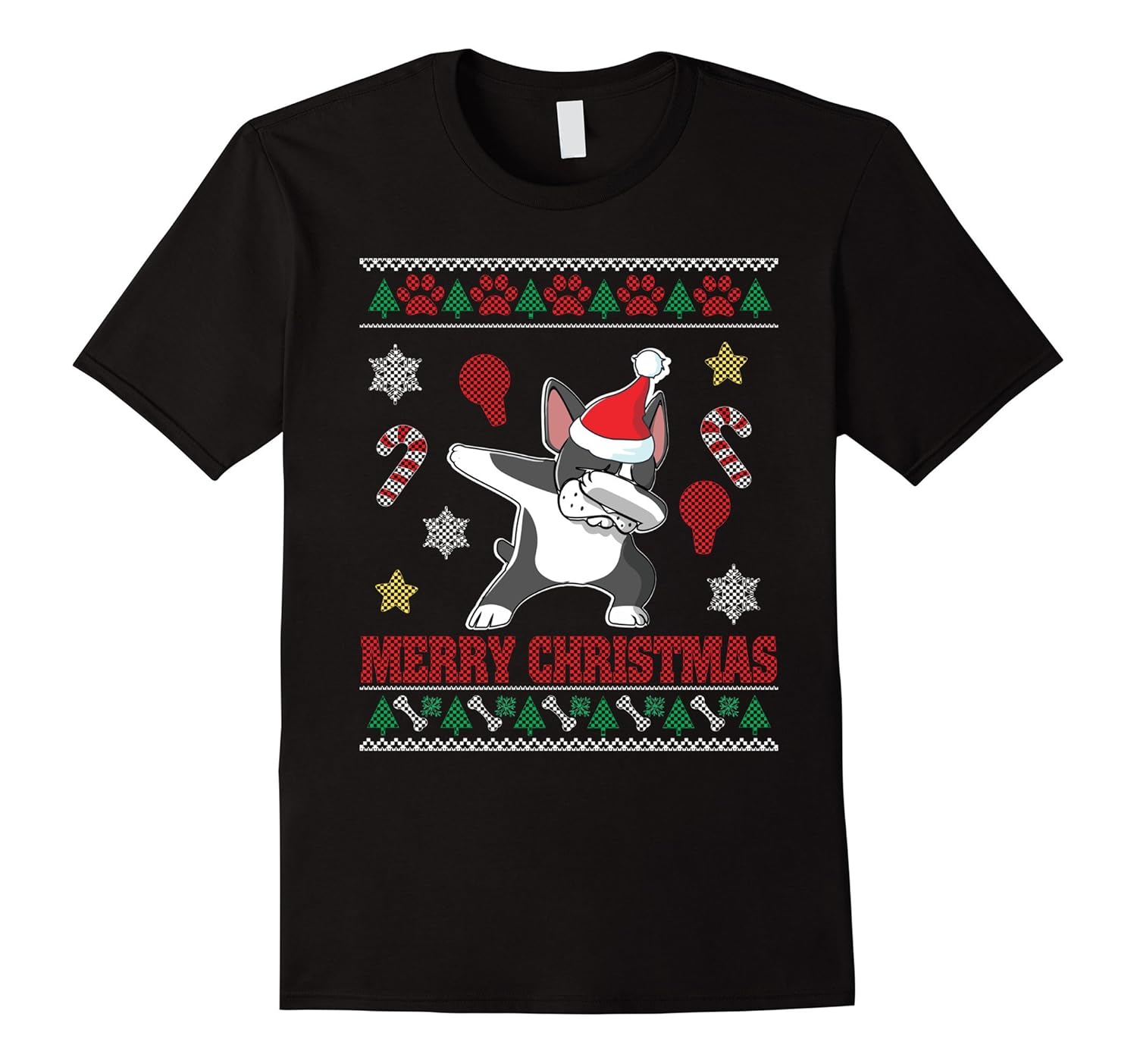 Boston Terrier Dog Dabbing Ugly Sweater T-Shirt Christmas-ANZ
