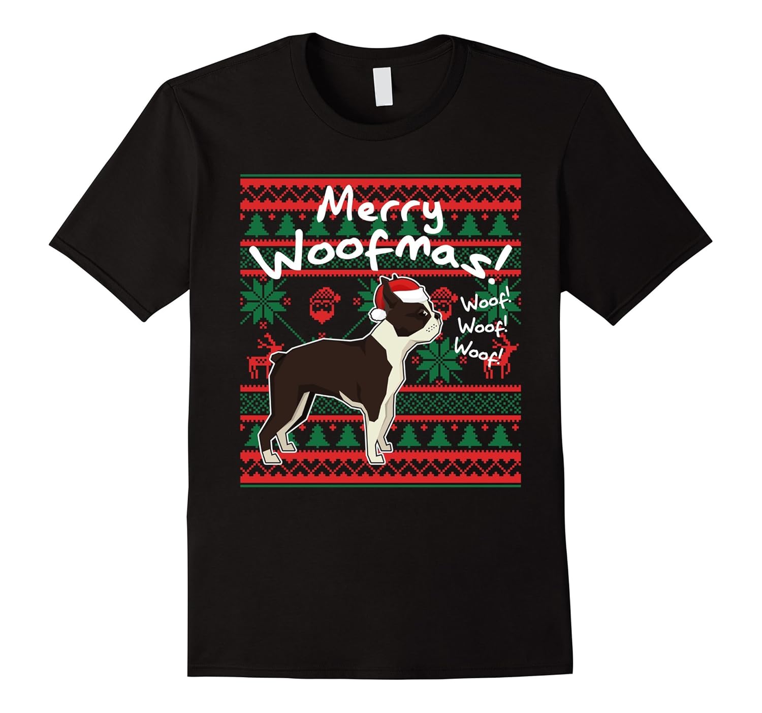 Boston Terrier Dog Merry Woofmas Shirt, Christmas Santa Dog-ANZ