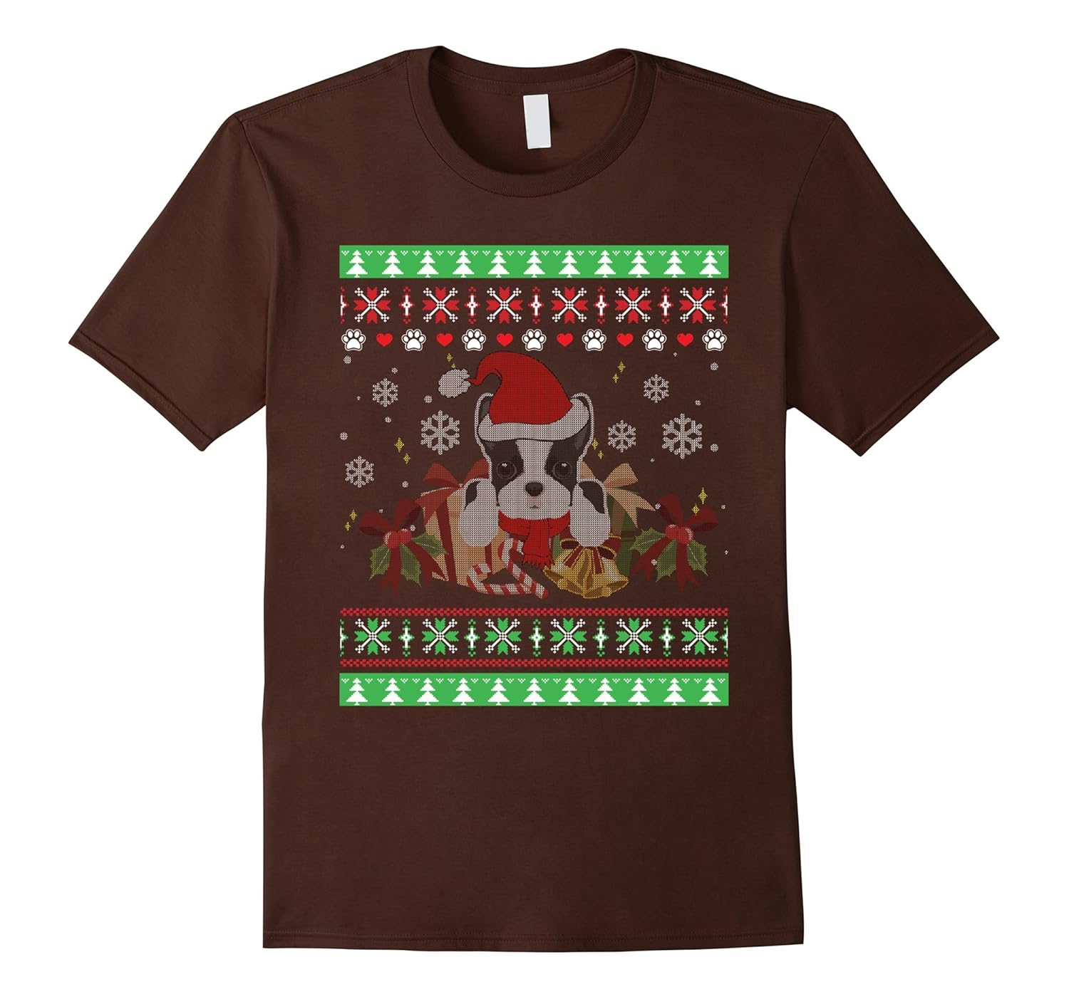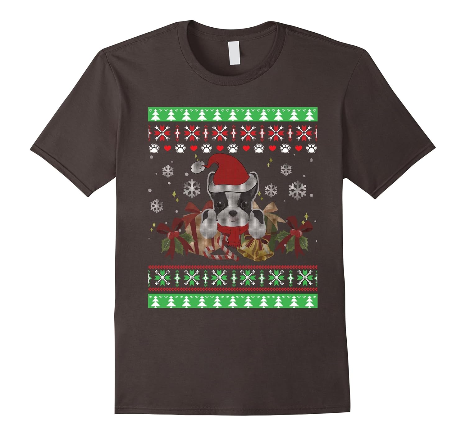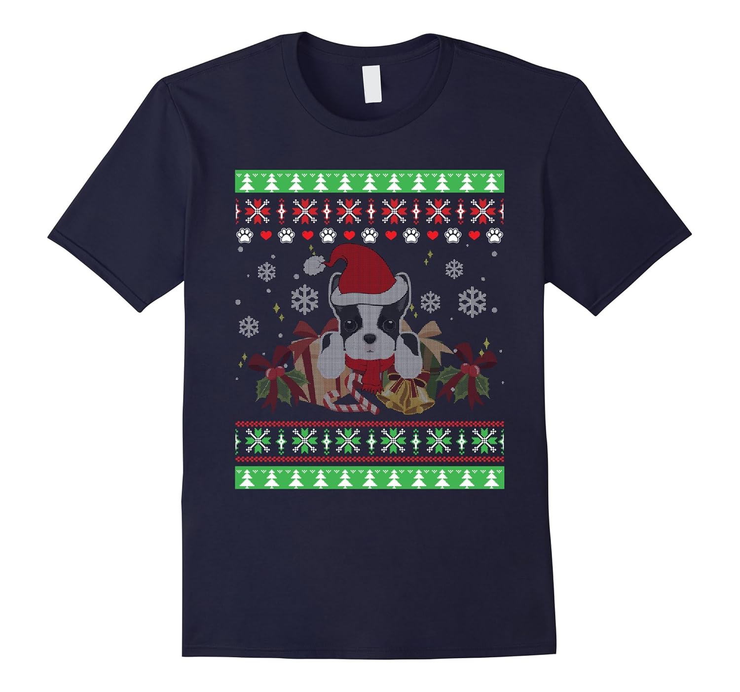 Boston Terrier Santa Hat Ugly Christmas Sweater T Shirt-ANZ