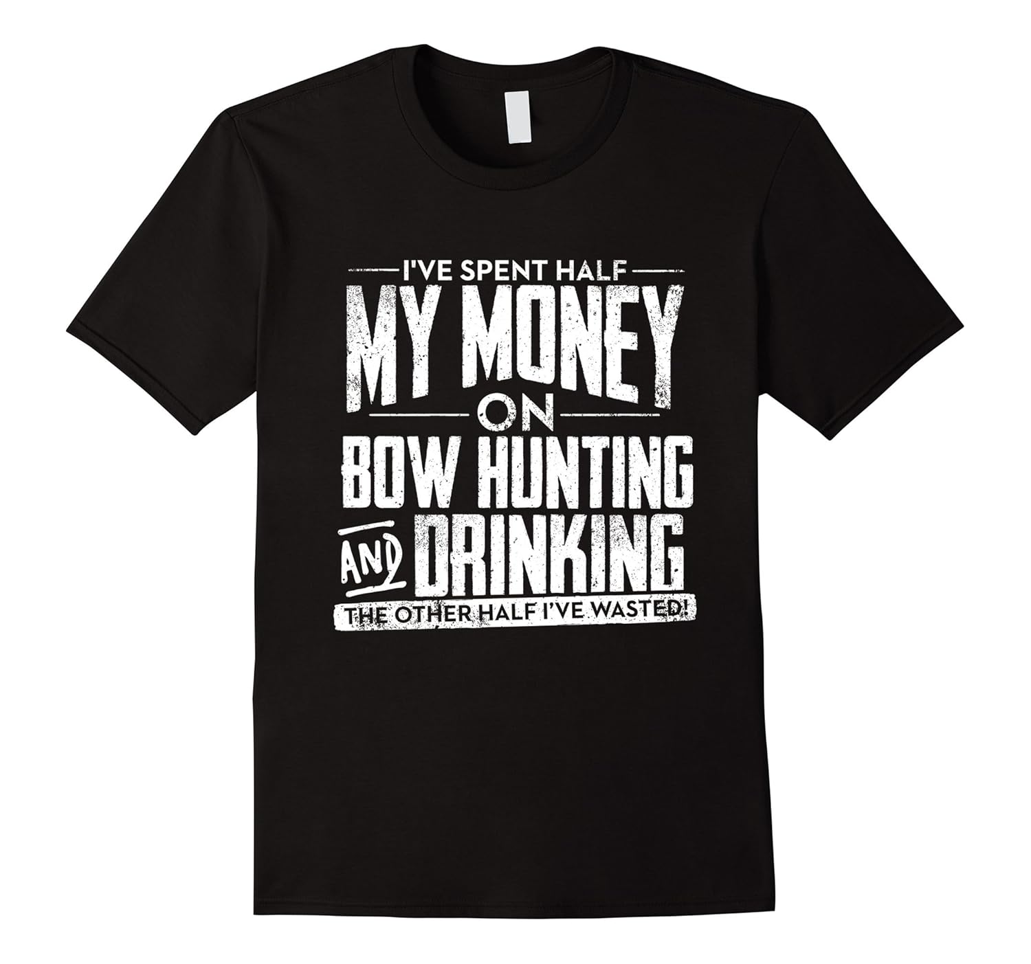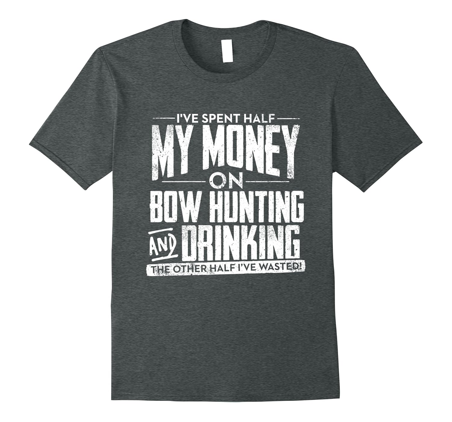 Solid colors: 100% Cotton; Heather Grey: 90% Cotton, 10% Polyester; All Other Heathers: 65% Cotton, 35% Polyester, Imported, Machine wash cold with like colors, dry low heat, Great gift for the bow hunter in your life. I”ve spent half my money on Bow hunting and Drinking. The other half I”ve wasted!, Lightweight, Classic fit, Double-needle sleeve and bottom hem