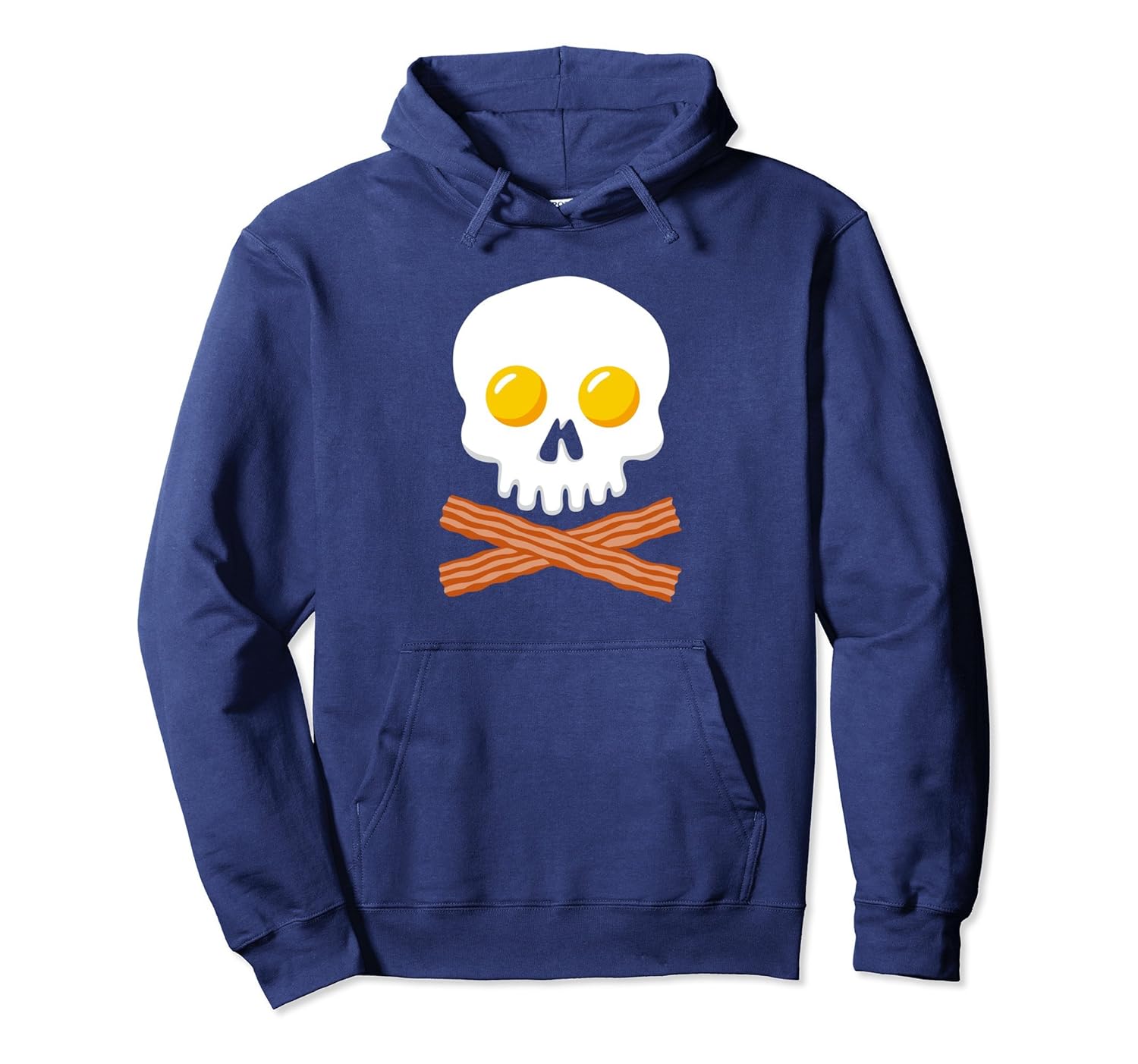 Solid colors: 80% Cotton, 20% Polyester; Heather Grey: 78% Cotton, 22% Poly; Dark Heather: 50% Cotton, 50% Polyester; Imported; Machine wash cold with like colors, dry low heat; Feeling Hungry like a pirate? Wear this Breakfast Skull Hoodie wherever you go! Perfect for all food lovers who is also a fan of sea adventures or even as a spooky yet fun Halloween costume. Featuring the eggs as skull Andamp; bacon as crossbones.; Complete your pirate collection with this Breakfast Skull Hoodie! This goes well with your pirate gifts, collection, toys, necklace, decor, hat, earrings, shoes, bracelet , decals, stickers and other accessories. A complete breakfast before going to partie; 8.5 oz, Classic fit, Twill-taped neck