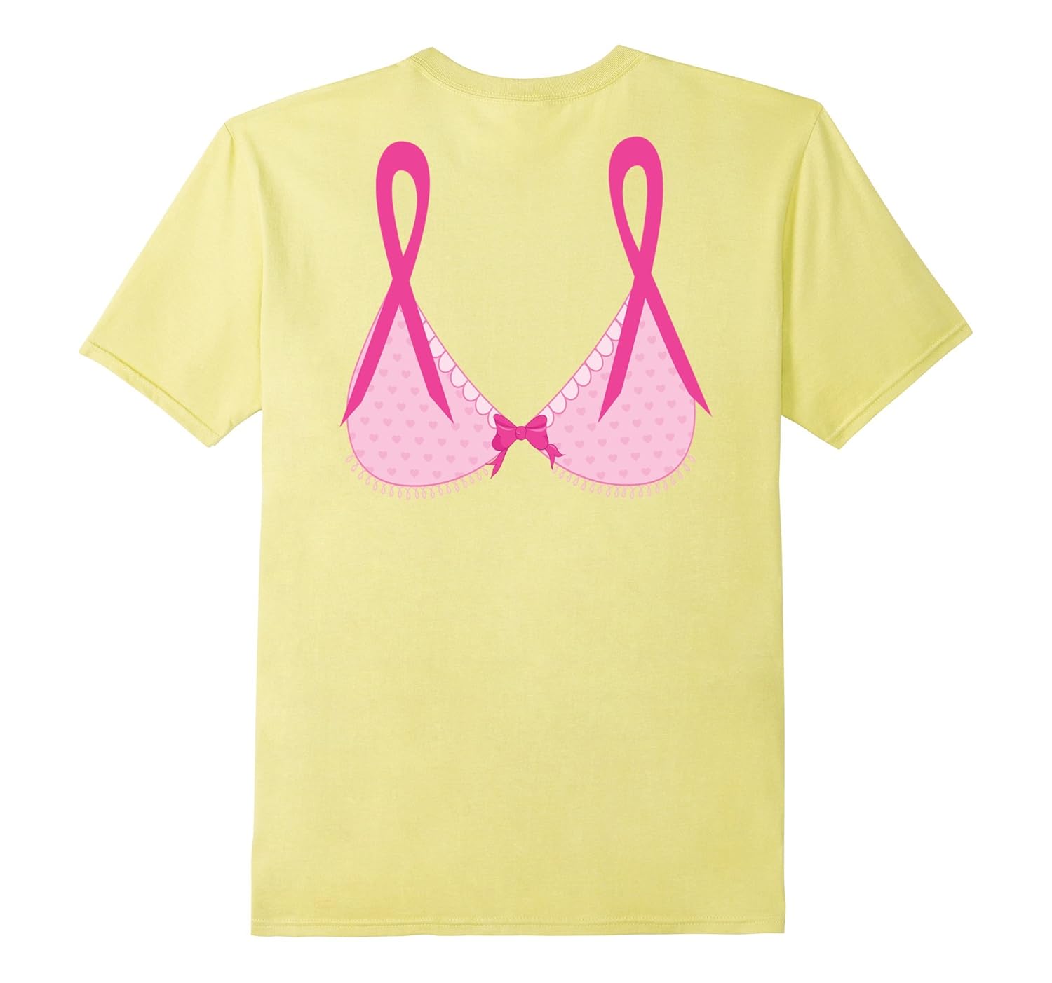 100% Cotton, Imported, Machine wash cold with like colors, dry low heat, IMAGE ON BACK OF SHIRT. Modern and Trendy Pink Breast Cancer Awareness Ribbon accent Bra Graphic T-Shirt. This great Breast Cancer Pink Ribbon Graphic Shirt is great for October, Nurses, Doctors, Survivors, Warriors destroying cancer and their loved ones! Many similar designs available. Designed in loving memory of 2 amazing Breast Cancer Survivors. Lightweight, Classic fit, Double-needle sleeve and bottom hem