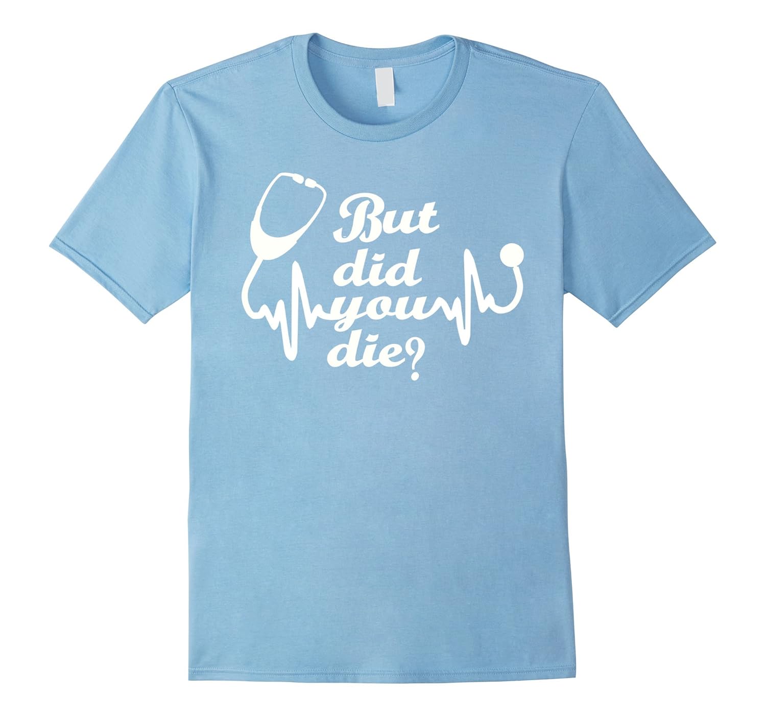 Solid colors: 100% Cotton; Heather Grey: 90% Cotton, 10% Polyester; All Other Heathers: 65% Cotton, 35% Polyester, Imported, Machine wash cold with like colors, dry low heat, But Did You Die Nurse T-Shirt is designed to fit. For a looser fit order a size up. BUT DID YOU DIE. Funny nurse tshirt for the registered nurse, nursing student, or hospital staff who likes funny tshirts. If you save lives on the regular, maybe you”re a paramedic or emergency response, you”ll like this funny medical professional tee. Lightweight, Classic fit, Double-needle sleeve and bottom hem