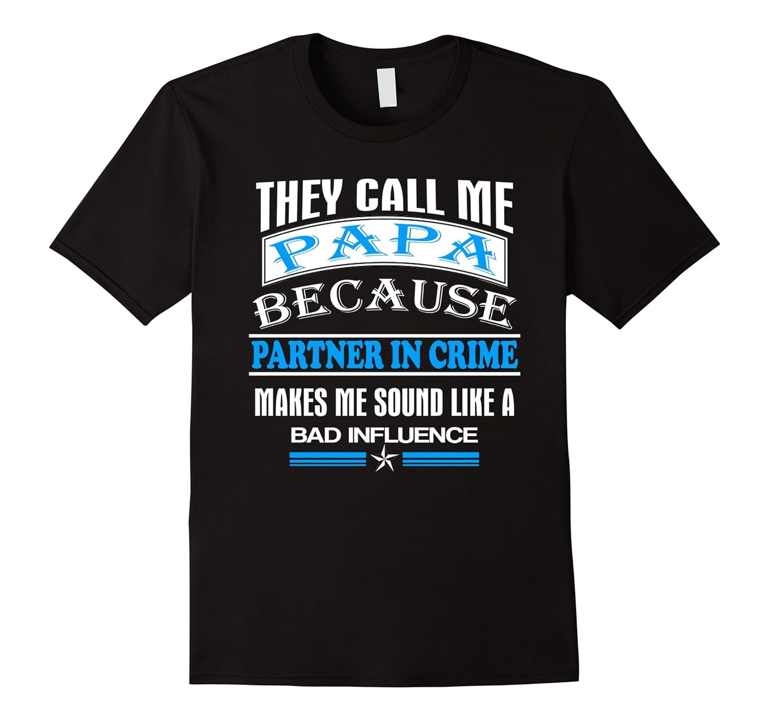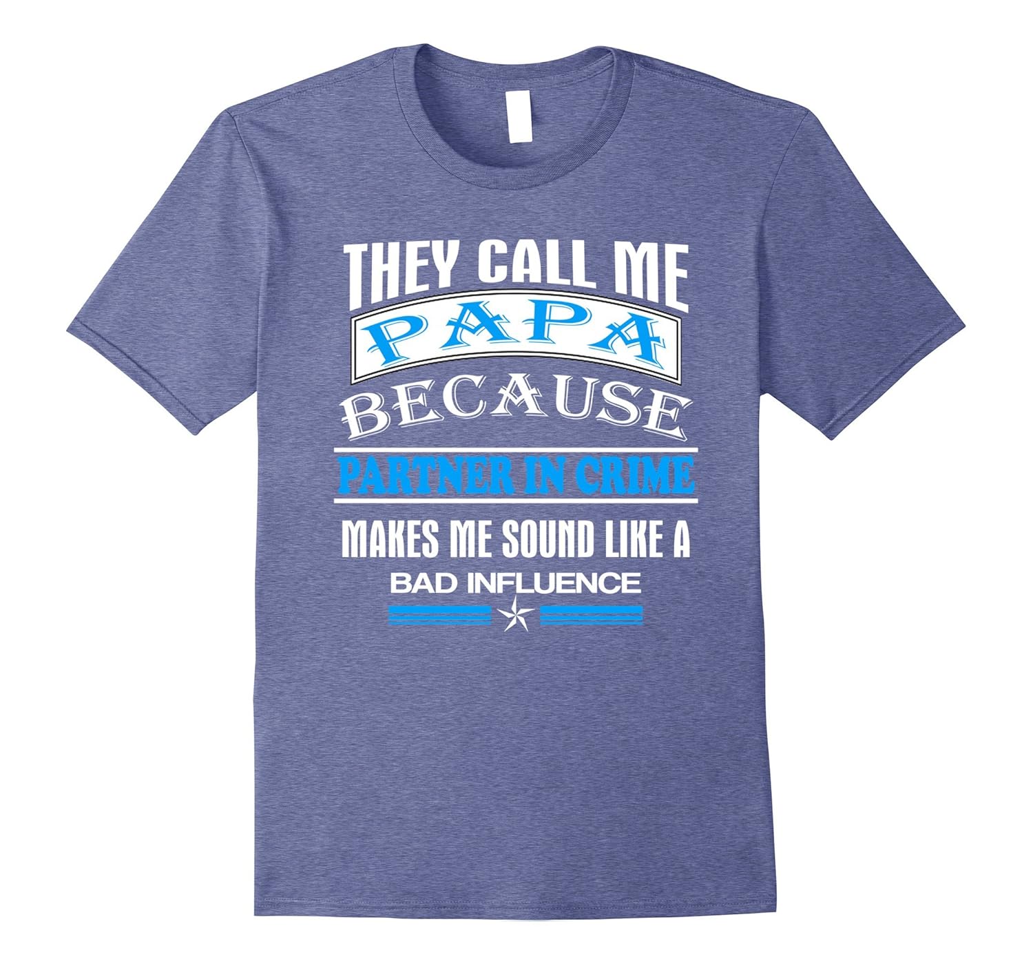 Solid colors: 100% Cotton; Heather Grey: 90% Cotton, 10% Polyester; All Other Heathers: 65% Cotton, 35% Polyester; Imported; Machine wash cold with like colors, dry low heat; They Call Me Papa Because Partner In Crime Makes Me Sound Like A Bad Influence t shirt, family shirt, family t shirt, family tee, family gift, Papa t shirt, Papa tee, Papa lover t shirt, funny t shirt, funny gift, funny tee; Love my Papa t shirt, best Papa ever t shirt, Papa lover t shirt, partner t shirt, partner tee, partner gift. This is a great gift for Papa on special day: Christmas day, Birthday, Familys Day, Party, Event, Holiday; Lightweight, Classic fit, Double-needle sleeve and bottom hem