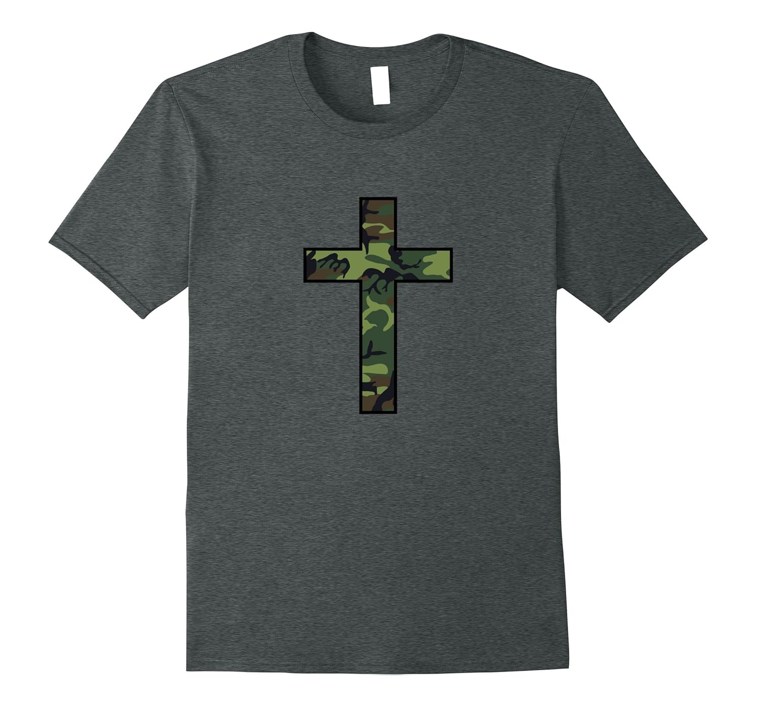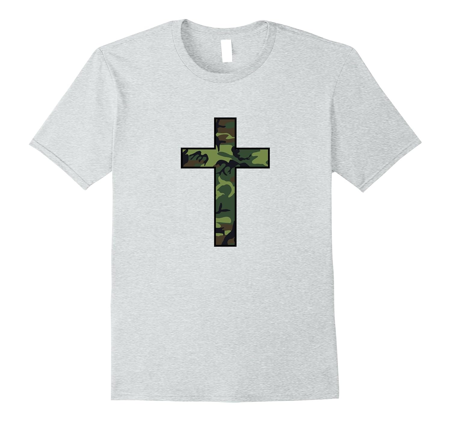 Solid colors: 100% Cotton; Heather Grey: 90% Cotton, 10% Polyester; All Other Heathers: 65% Cotton, 35% Polyester, Imported, Machine wash cold with like colors, dry low heat, Camouflage Christian cross, Vivid woodland colors, Lightweight, Classic fit, Double-needle sleeve and bottom hem