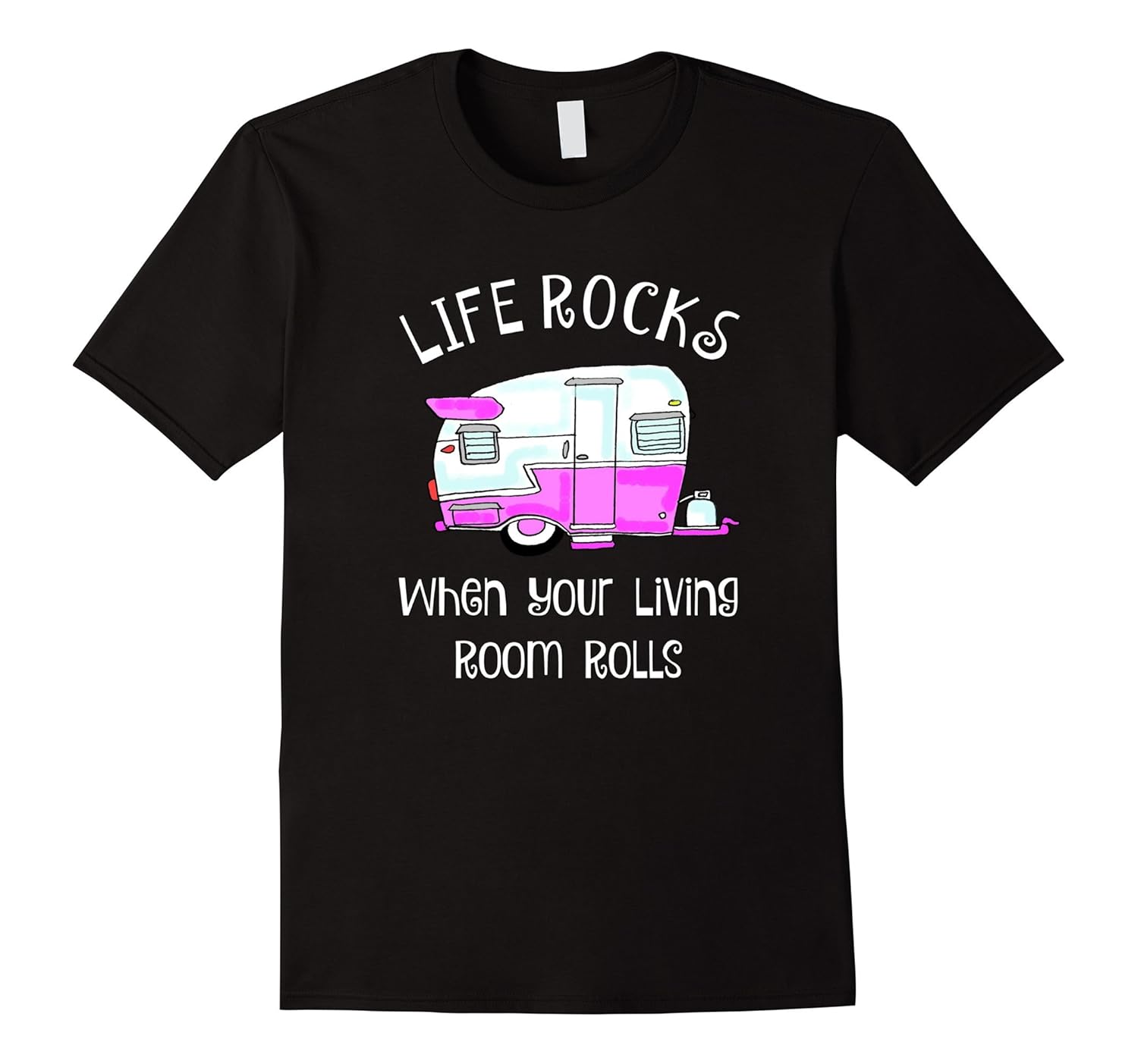 Solid colors: 100% Cotton; Heather Grey: 90% Cotton, 10% Polyester; All Other Heathers: 65% Cotton, 35% Polyester, Imported, Machine wash cold with like colors, dry low heat, Funny RV themed gifts camping shirts for family with cute pink trailer graphic. Fun camping tshirt kids! Our shirts are designed to be snug, so please order a size larger. Perfect RVing tshirts, camping grandma shirt and camping tops women with humorous quote: Life Rocks When Your Living Room Rolls. Awesome gift for the glamping queen!, Lightweight, Classic fit, Double-needle sleeve and bottom hem