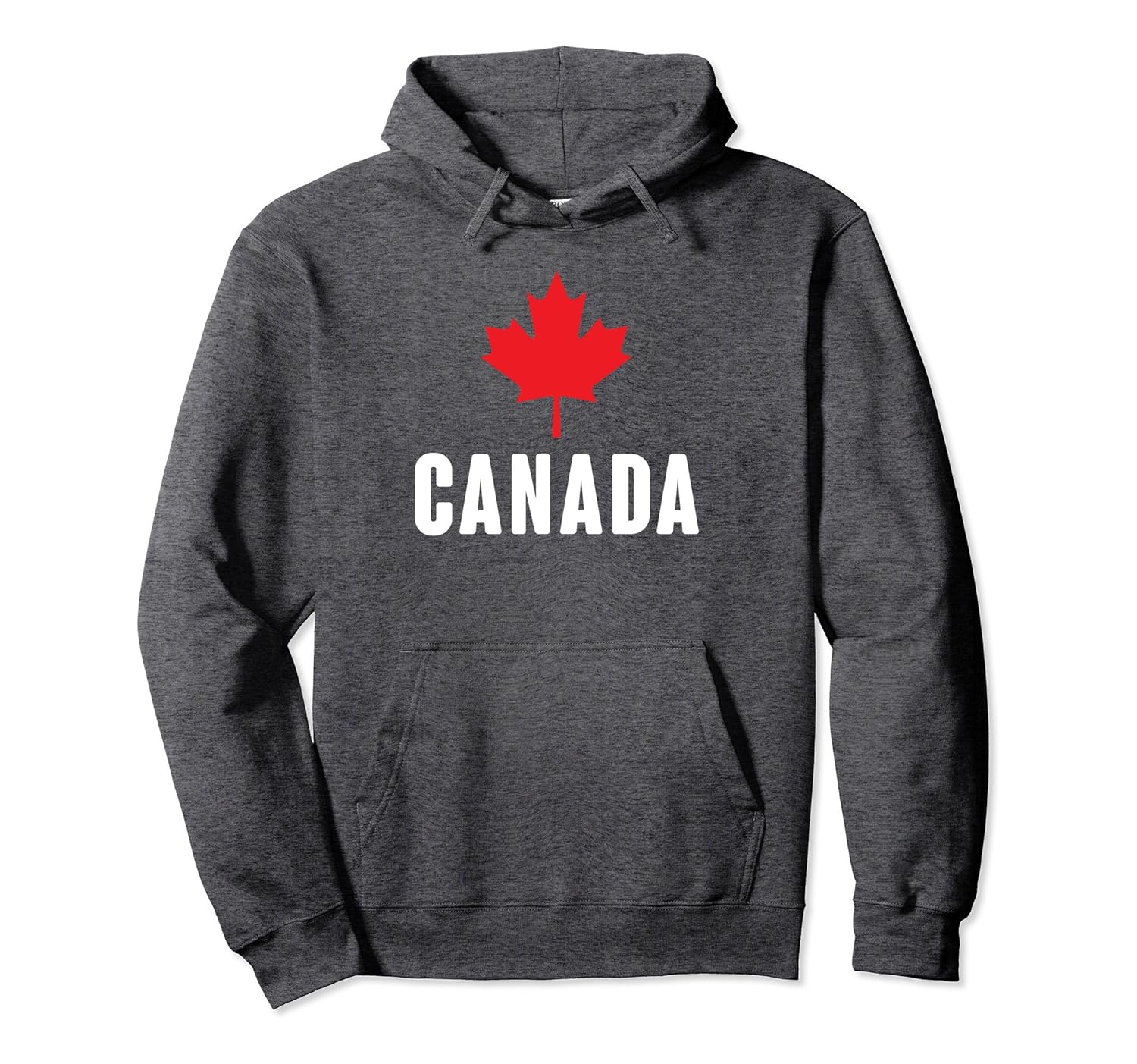 Solid colors: 80% Cotton, 20% Polyester; Heather Grey: 78% Cotton, 22% Poly; Dark Heather: 50% Cotton, 50% Polyester; Imported; Machine wash cold with like colors, dry low heat; Wear this Canada hoodie to share your Canadian pride with this design that features CANADA in modern bold letters and a big maple leaf icon inspired by the Canadian flag.; This Canadian hoodie is a great way to represent Canada if you love Alberta, British Columbia, Manitoba, New Brunswick, Newfoundland and Labrador, Nova Scotia, Ontario, Prince Edward Island, Quebec, or Saskatchewan.; 8.5 oz, Classic fit, Twill-taped neck