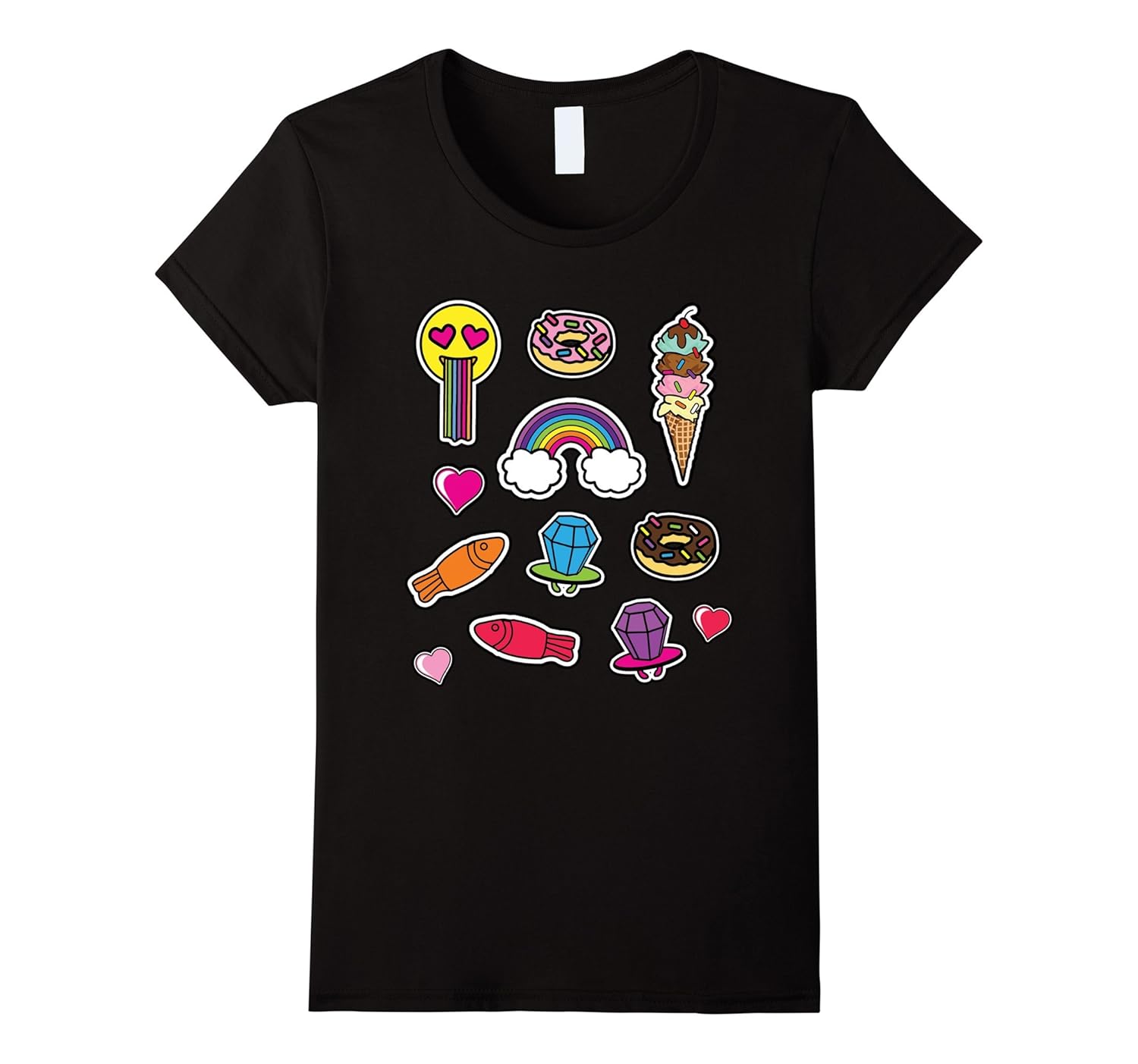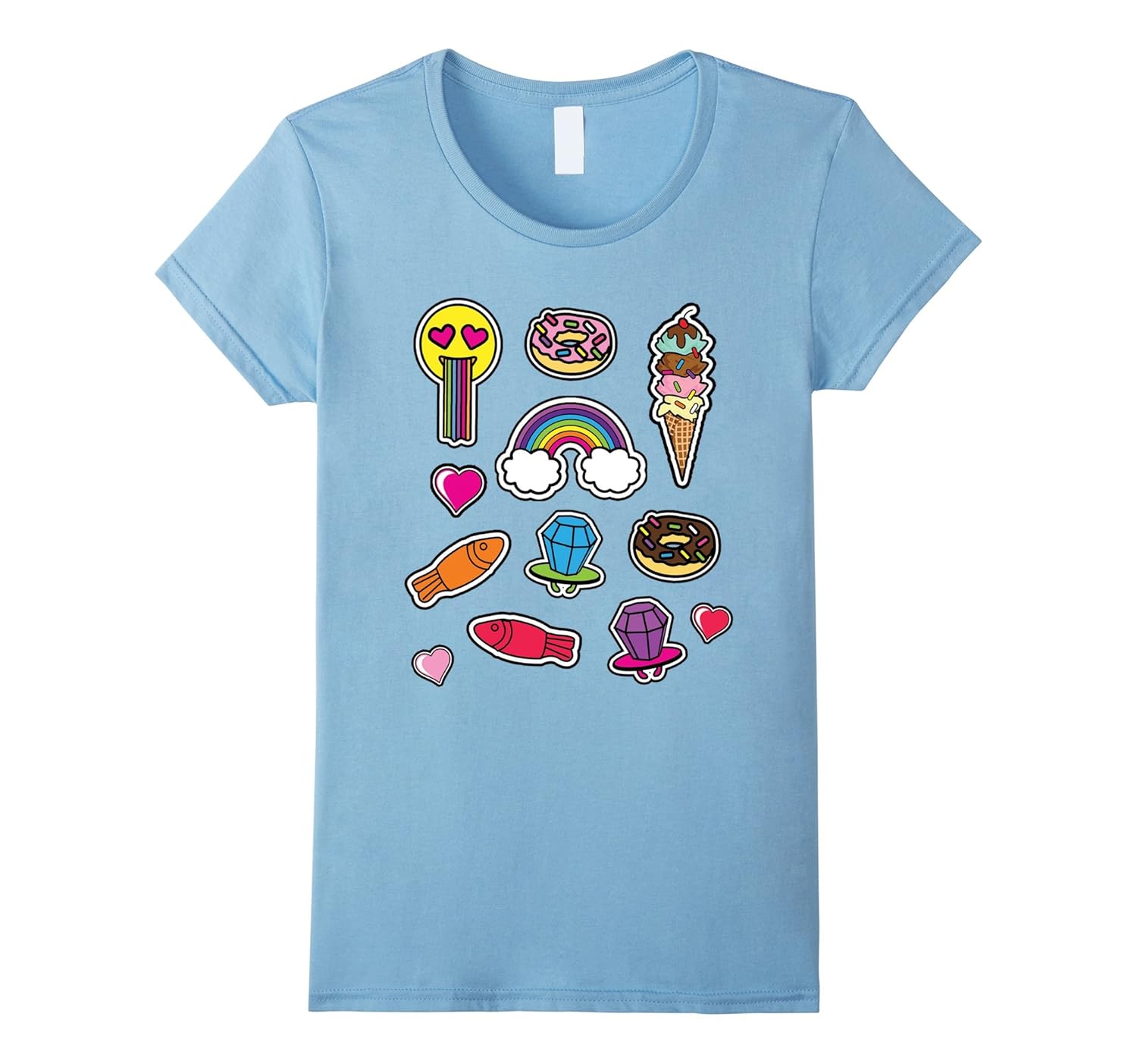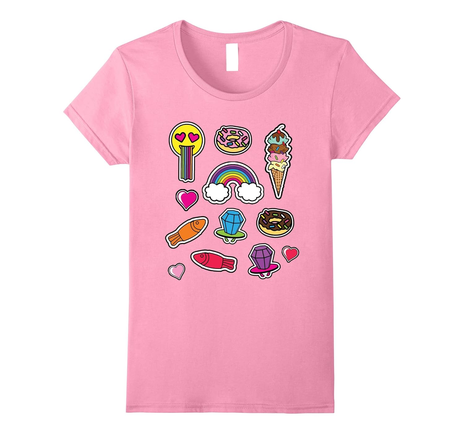 Solid colors: 100% Cotton; Heather Grey: 90% Cotton, 10% Polyester; All Other Heathers: 65% Cotton, 35% Polyester, Imported, Machine wash cold with like colors, dry low heat, Colorful Rainbow, Candy, Donuts, Emoji Rainbow Puke, Ice Cream, Ring Pops, Gummy Fish, Great for girls of all ages, Lightweight, Classic fit, Double-needle sleeve and bottom hem