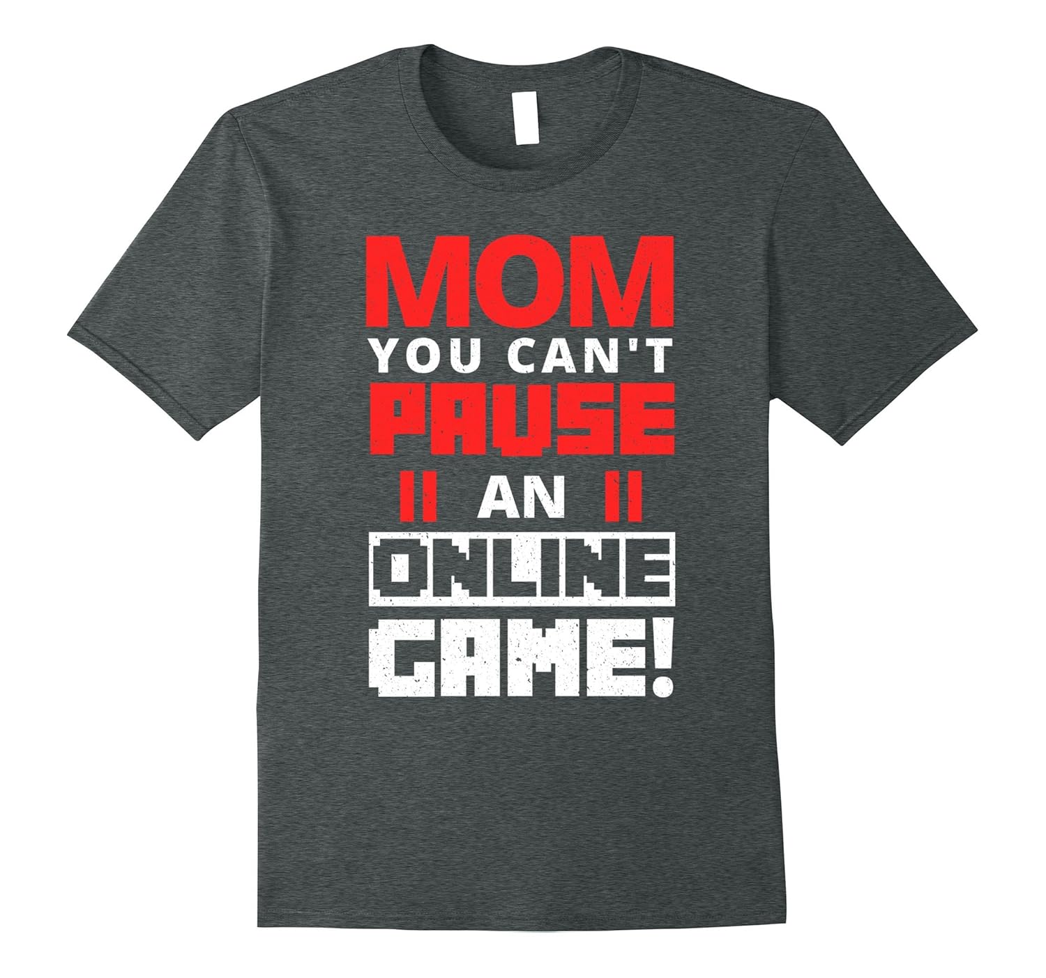 Solid colors: 100% Cotton; Heather Grey: 90% Cotton, 10% Polyester; All Other Heathers: 65% Cotton, 35% Polyester; Imported; Machine wash cold with like colors, dry low heat; What does a nerdy gamer, funny geek, budding software engineer or perhaps a beginner programer all have in common? They cant pause an online video game! Everyone knows this EXCEPT your mom. Show the noobs out there a proper, hilarious tee!; Wear this distressed, vintage T-shirt under your hoodie when playing shooters, RPGs, programming, coding or just watching anime. Parents, this is a fab gift for a geeky kid-your gamer son or daughter! Funny gift to wear on Halloween, Christmas or at home.; Lightweight, Classic fit, Double-needle sleeve and bottom hem