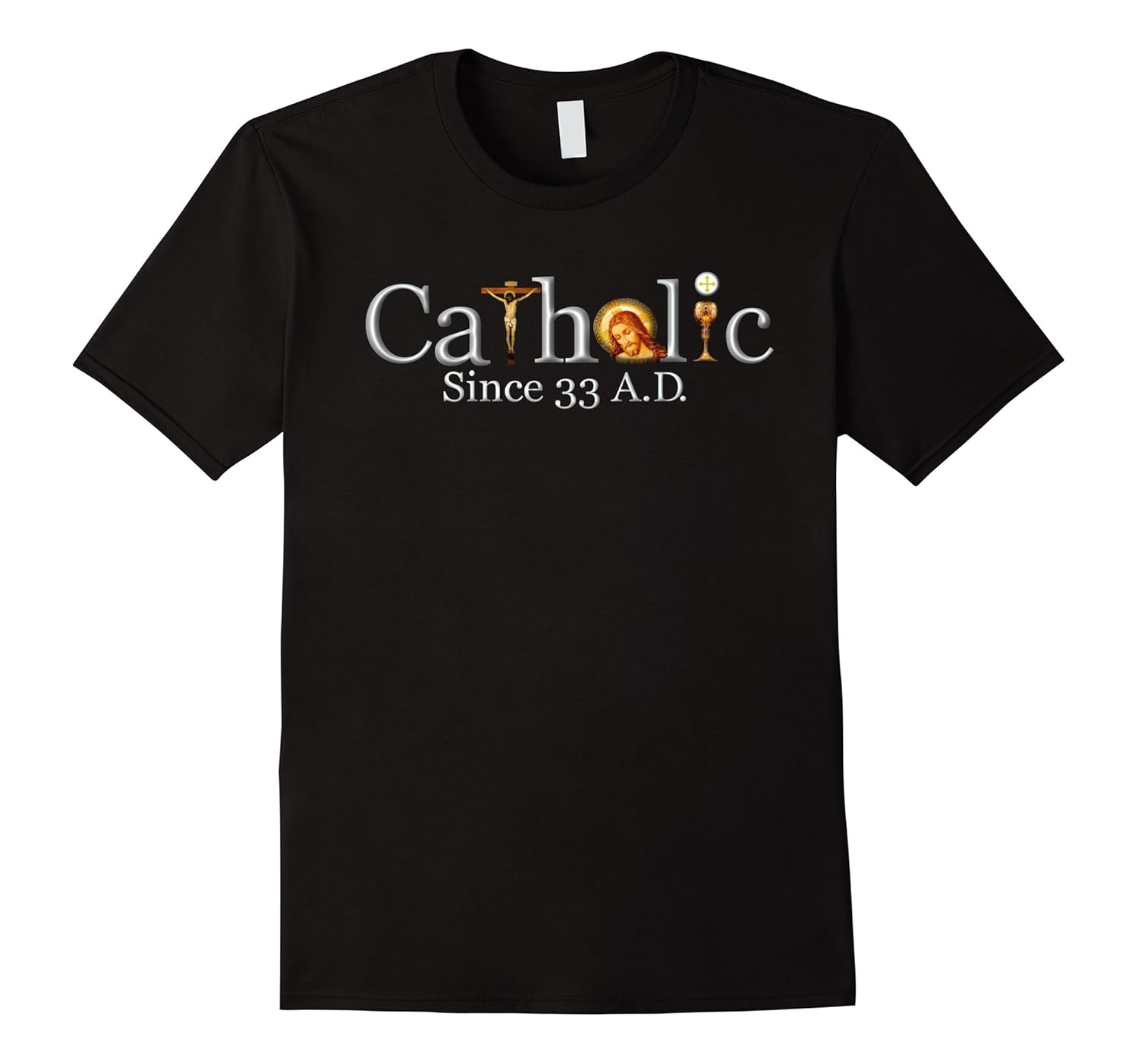 Solid colors: 100% Cotton; Heather Grey: 90% Cotton, 10% Polyester; All Other Heathers: 65% Cotton, 35% Polyester, Imported, Machine wash cold with like colors, dry low heat, First Holy Mass Jesus in the Eucharist Last Supper, Jesus Crucifixion Cross 33 AD Vatican History, Lightweight, Classic fit, Double-needle sleeve and bottom hem