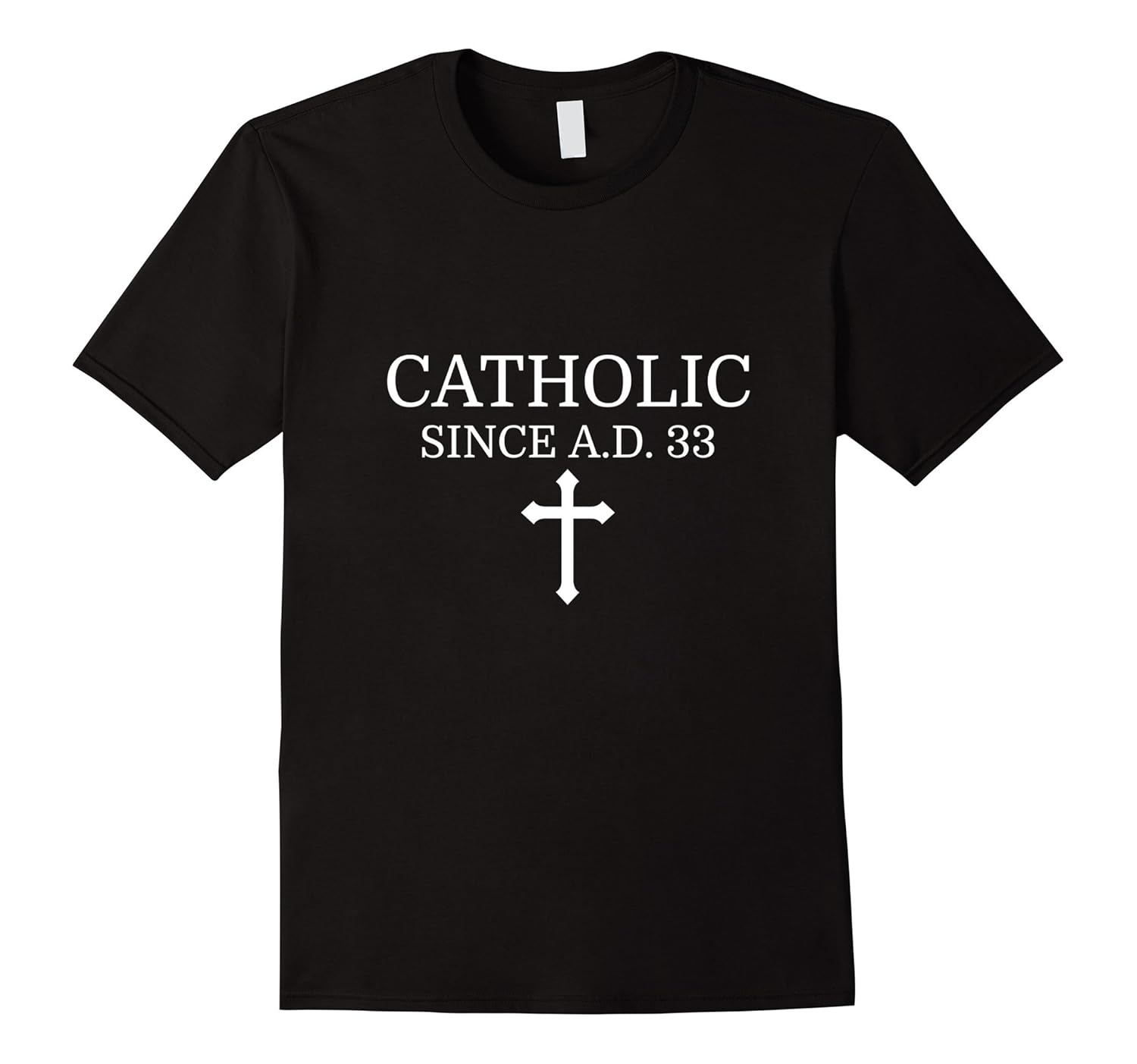 Solid colors: 100% Cotton; Heather Grey: 90% Cotton, 10% Polyester; All Other Heathers: 65% Cotton, 35% Polyester, Imported, Machine wash cold with like colors, dry low heat, This Catholic T-Shirt says “Catholic since A.D. 33” and has a cross on it. Great religious tshirt for Roman Catholics Christians devout faithful religious believers scriptural traditional. Catholic history Vatican Church historical original originality tee, This Catholic tee is a great way to remember that God Himself, Jesus Christ, founded the Catholic Church before His Crucifixion. The Catholic Church is the oldest Christian Church in the world. Catholic tshirts tee shirts t-shirts scripture religion, Lightweight, Classic fit, Double-needle sleeve and bottom hem