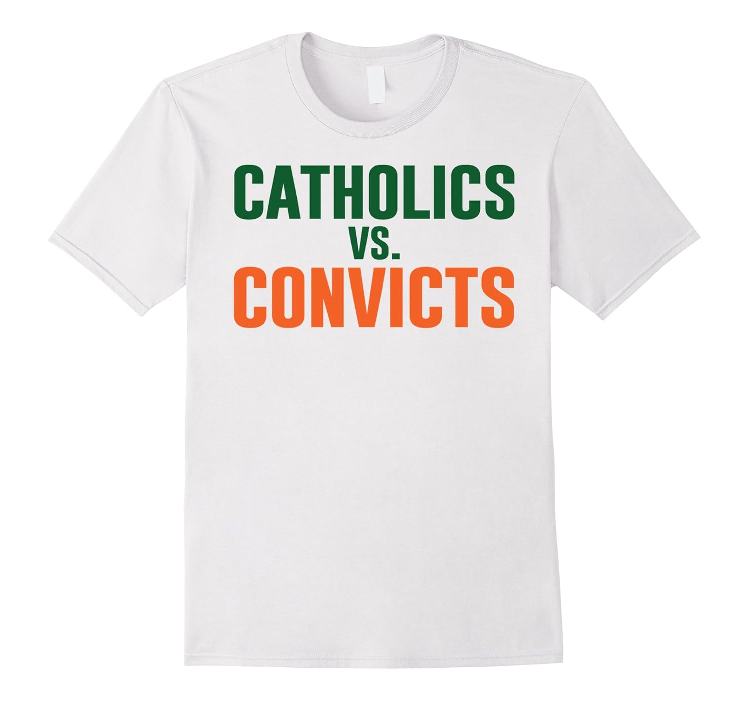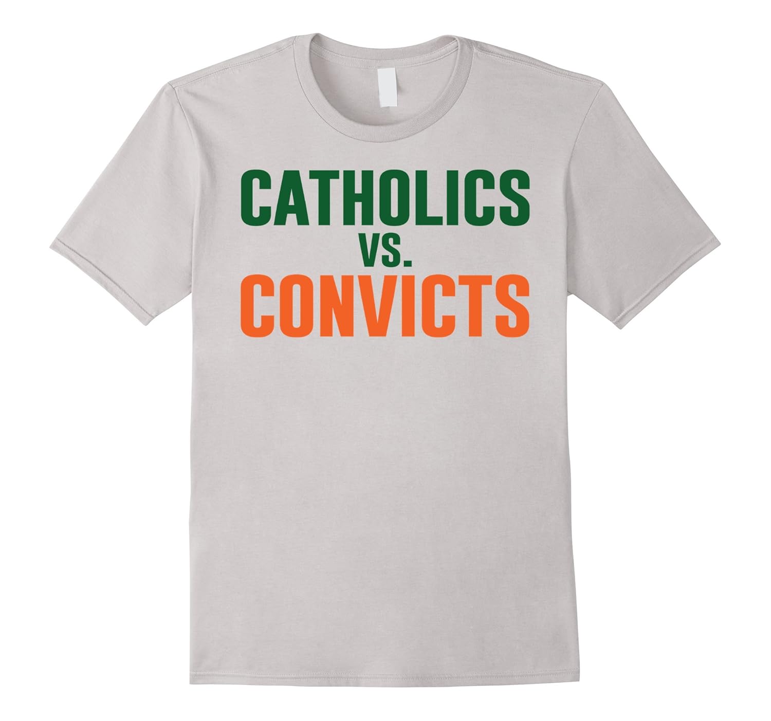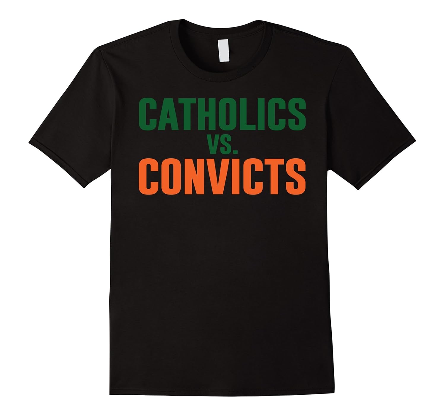 Solid colors: 100% Cotton; Heather Grey: 90% Cotton, 10% Polyester; All Other Heathers: 65% Cotton, 35% Polyester, Imported, Machine wash cold with like colors, dry low heat, Awesome Catholics vs Convicts rivalry t-shirt. If you are familiar of the documentary and the history of the game this tee is perfect for you. Great gift for every football fan. Great classic apparel for your vintage sports collection. Lightweight, Classic fit, Double-needle sleeve and bottom hem