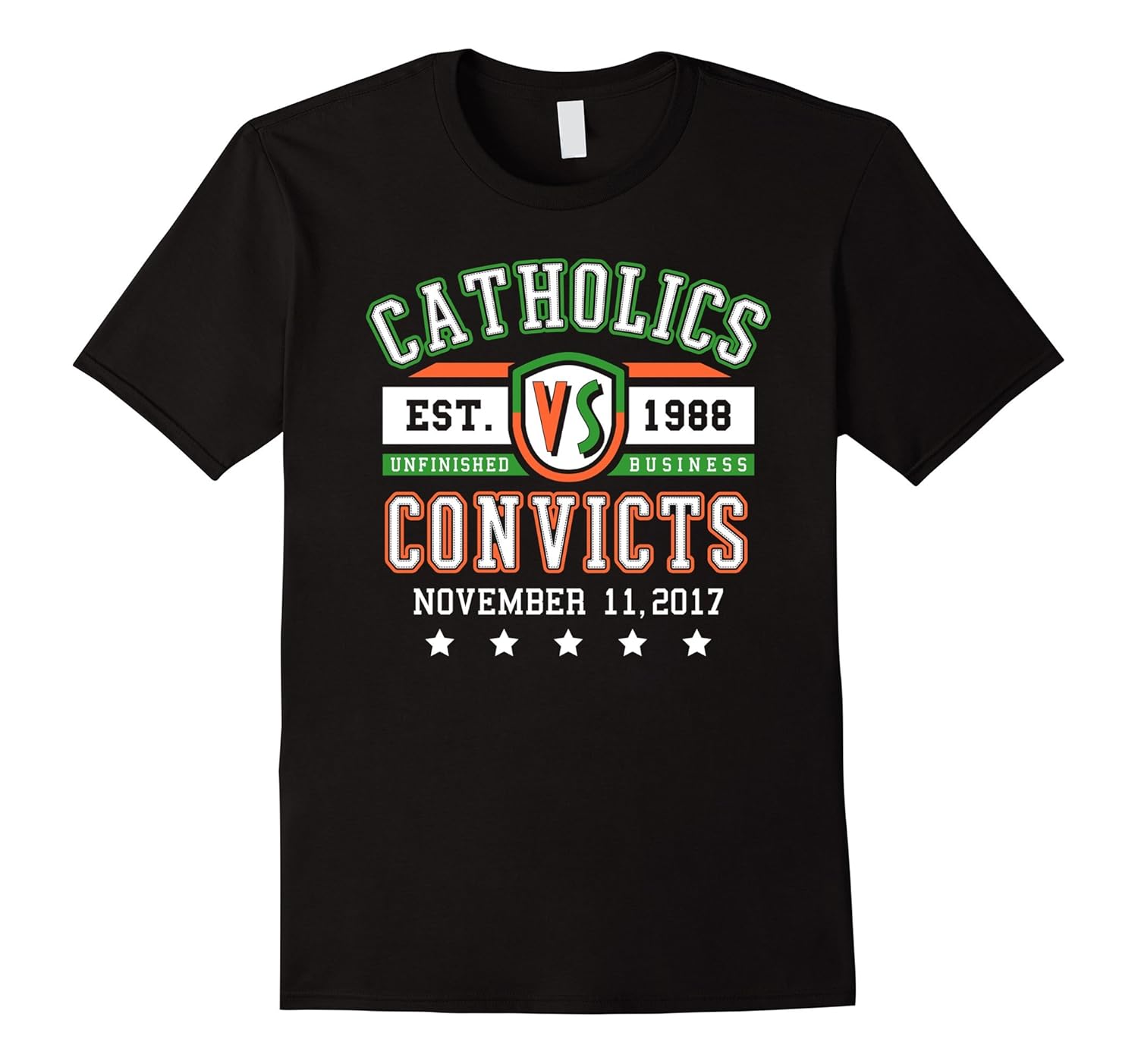 Solid colors: 100% Cotton; Heather Grey: 90% Cotton, 10% Polyester; All Other Heathers: 65% Cotton, 35% Polyester, Imported, Machine wash cold with like colors, dry low heat, Catholics Vs Convicts T Shirt 2017, Catholics Vs Convicts Rematch Shirts, 11-11-17 , November 11, 2017, Catholics Versus Convicts T-shirt Est 1988, Catholics vs. Convicts: Unfinished Business T-Shirt, American Football T Shirt, College Football Tshirts, Lightweight, Classic fit, Double-needle sleeve and bottom hem