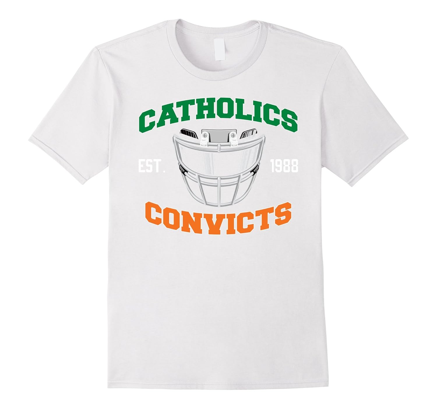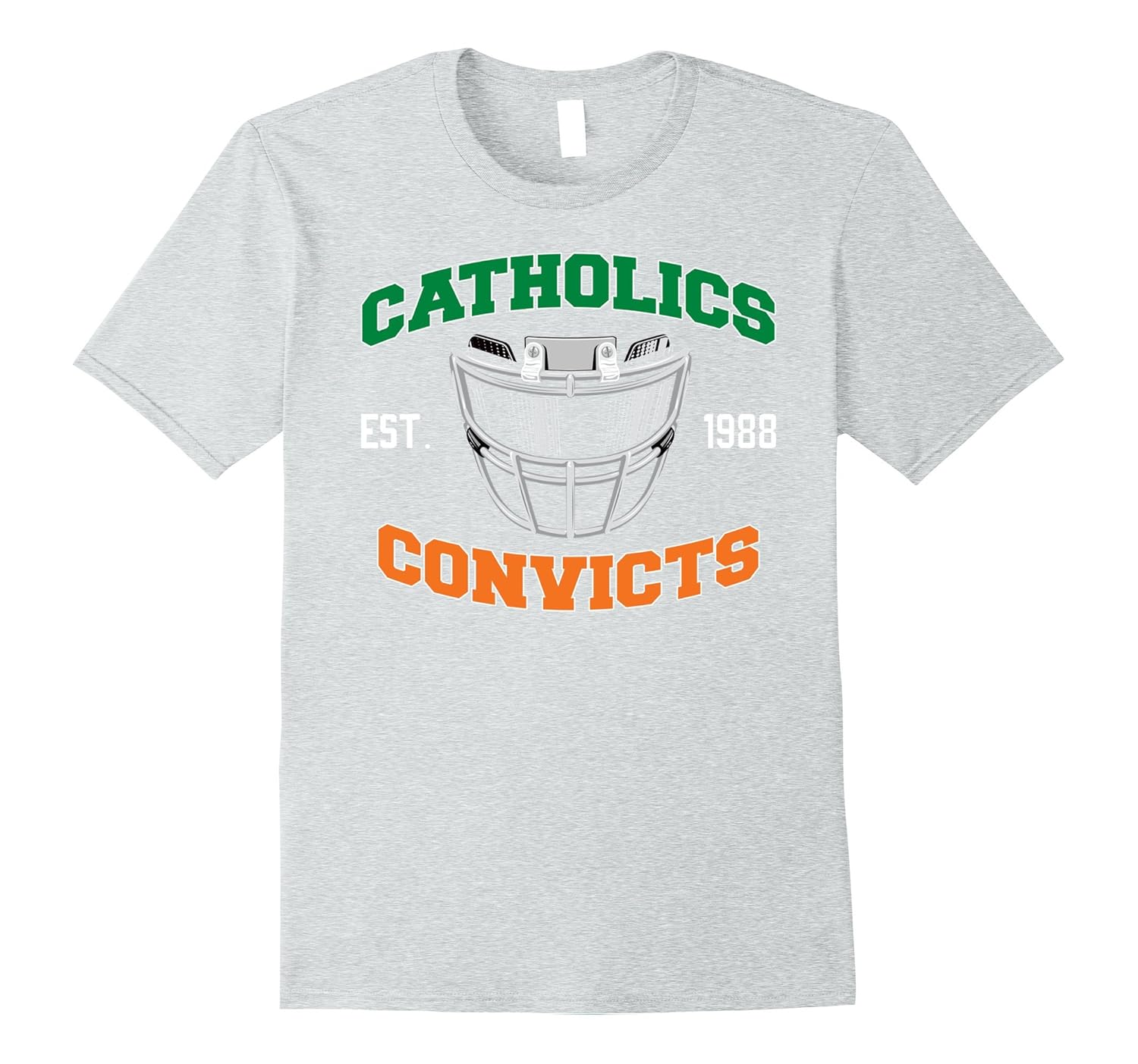 Solid colors: 100% Cotton; Heather Grey: 90% Cotton, 10% Polyester; All Other Heathers: 65% Cotton, 35% Polyester, Imported, Machine wash cold with like colors, dry low heat, Catholics vs Convicts Football Fan Gift T Shirt is a great college football shirt for an old rivalry that goes back to 1988. Makes a great Birthday or Christmas gift for any college football fan. SIZE UP WHEN ORDERING your Catholics vs Convicts shirt for a more loose fit. Lightweight, Classic fit, Double-needle sleeve and bottom hem