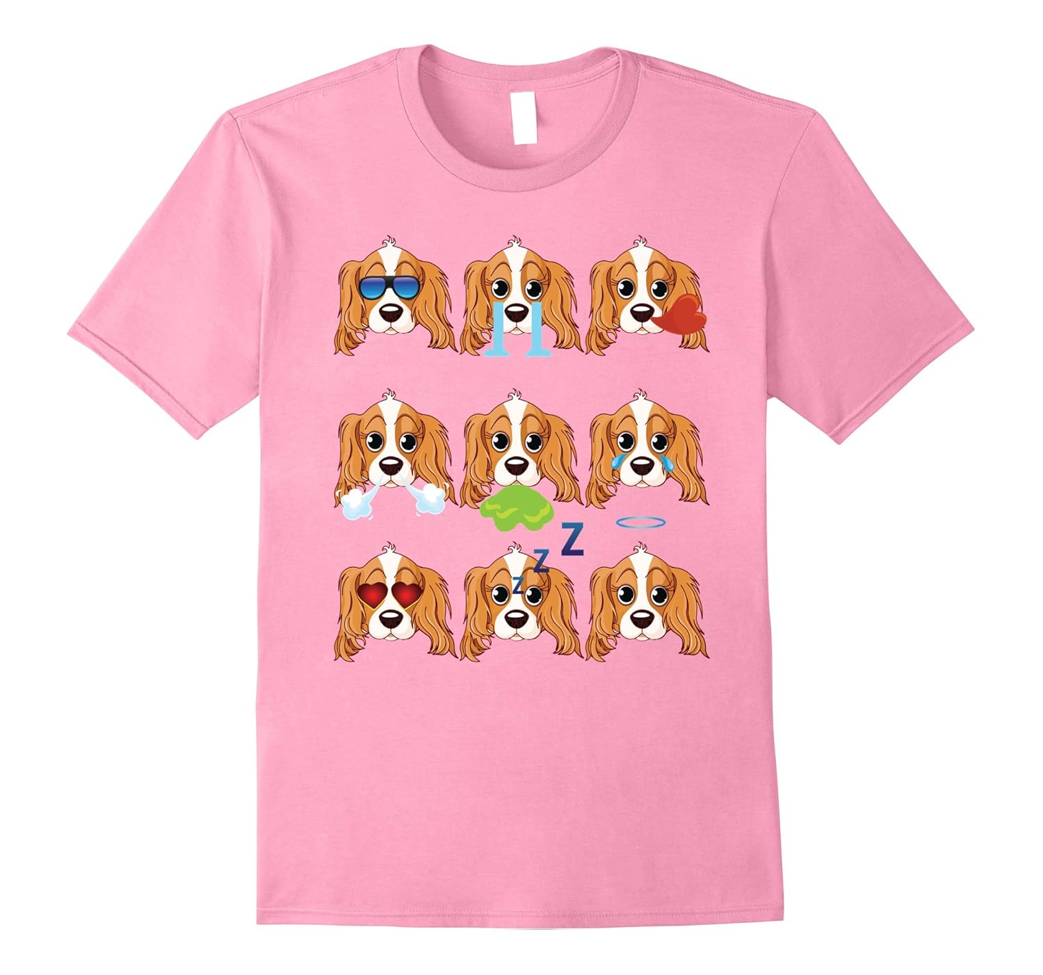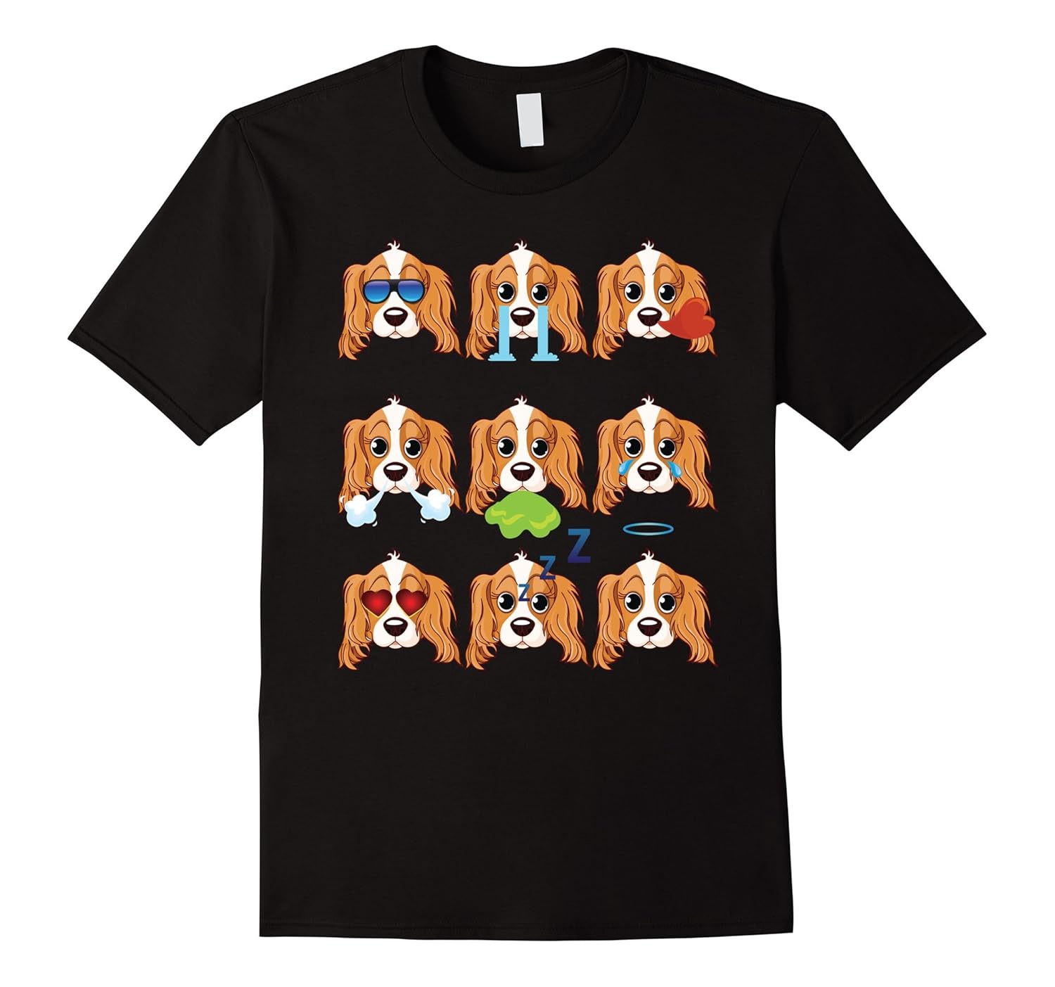CAVALIER KING CHARLES SPANIEL Dog Nine Emotions Face TShirt-ANZ