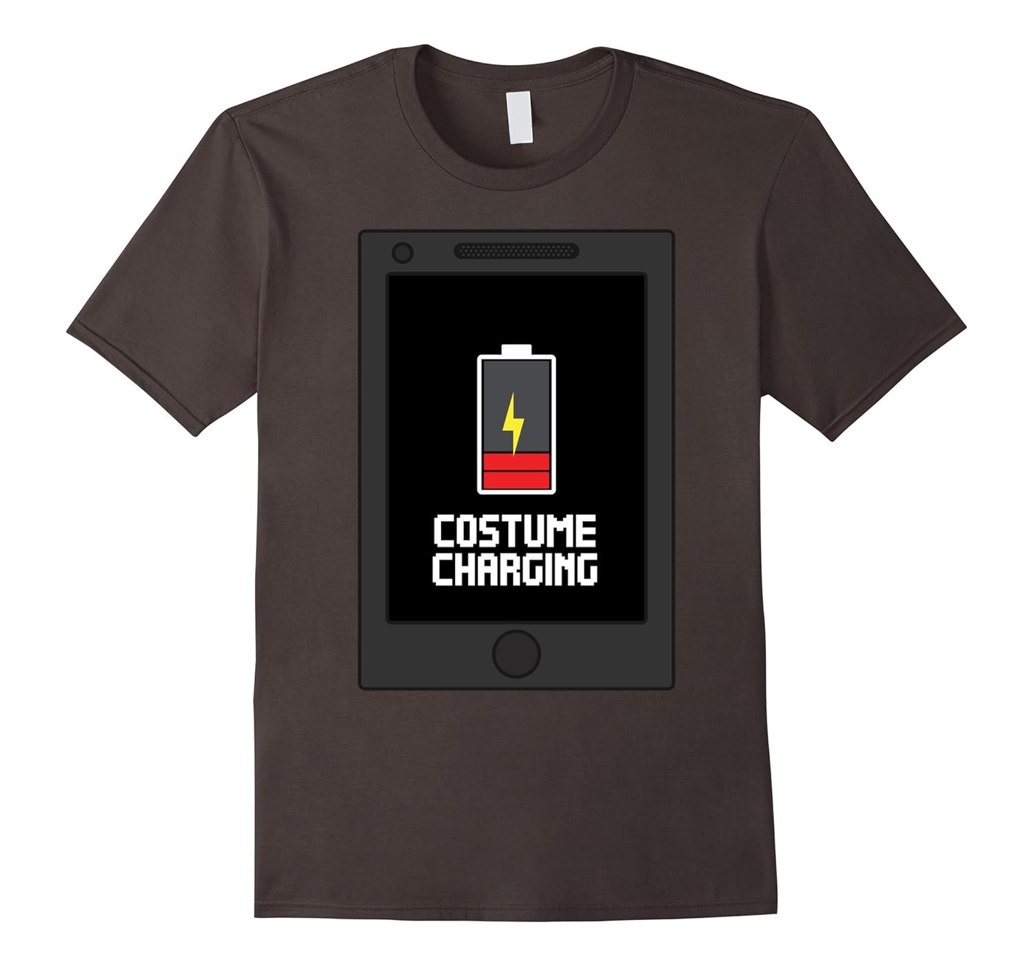 Solid colors: 100% Cotton; Heather Grey: 90% Cotton, 10% Polyester; All Other Heathers: 65% Cotton, 35% Polyester, Imported, Machine wash cold with like colors, dry low heat, Halloween cell phone costume shirt is great for adults, teen girls, and kids. This funny Halloween shirt features a cellphone front with a charging batter icon that says costume charging. Cute Funny Halloween costume outfit this 2017! Great for teen girls!, Halloween clothes is designed to be fitted. For a looser fit, please order size up. Cute halloween outfits for men, teen girls, women and; kids make great halloween costumes for school, work appropriate Halloween costumes, Halloween parties, trick or treating, Lightweight, Classic fit, Double-needle sleeve and bottom hem