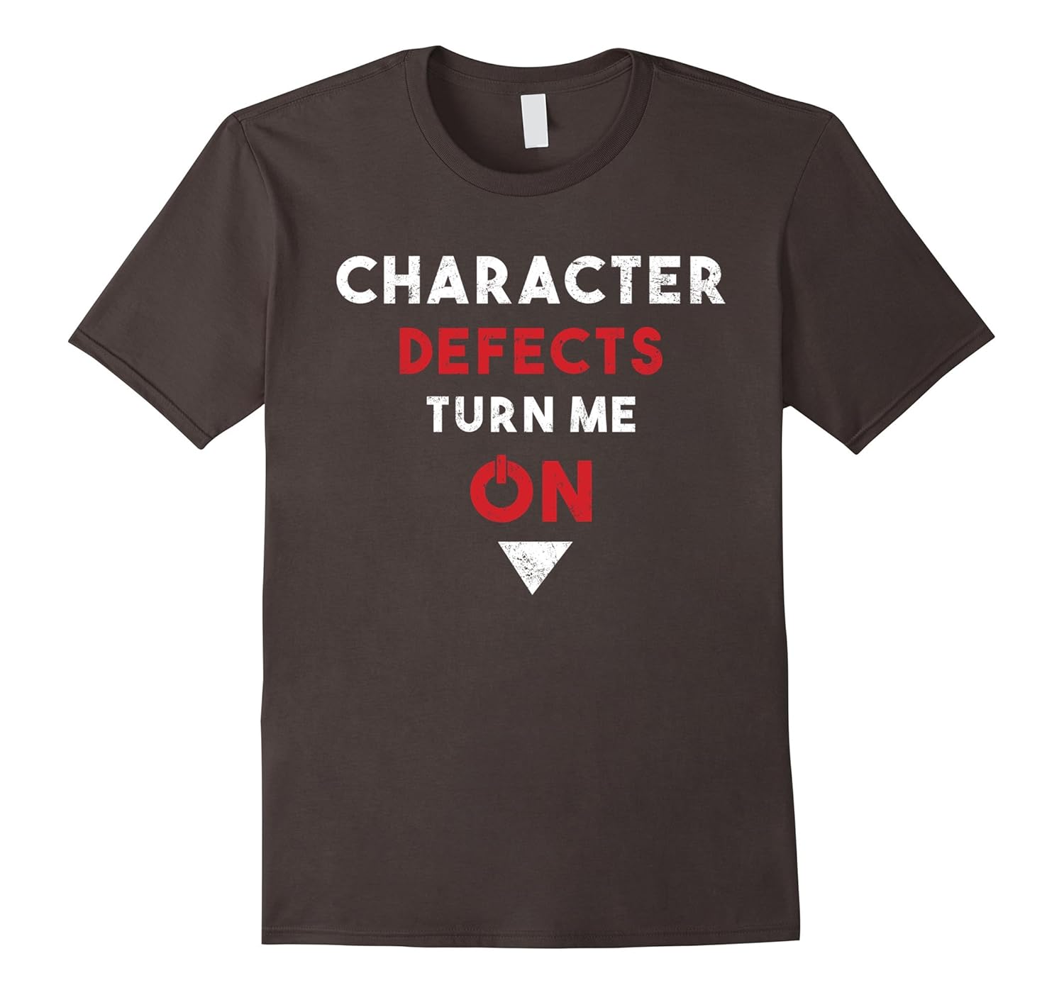 Solid colors: 100% Cotton; Heather Grey: 90% Cotton, 10% Polyester; All Other Heathers: 65% Cotton, 35% Polyester, Imported, Machine wash cold with like colors, dry low heat, Character defects turn me on t-shirt is perfect alcoholic, drinkers, alcoholics anonymous. Wear it for Halloween, Thanksgiving, Christmas, Party, Events or all year round for a nice look!, Lightweight, Classic fit, Double-needle sleeve and bottom hem