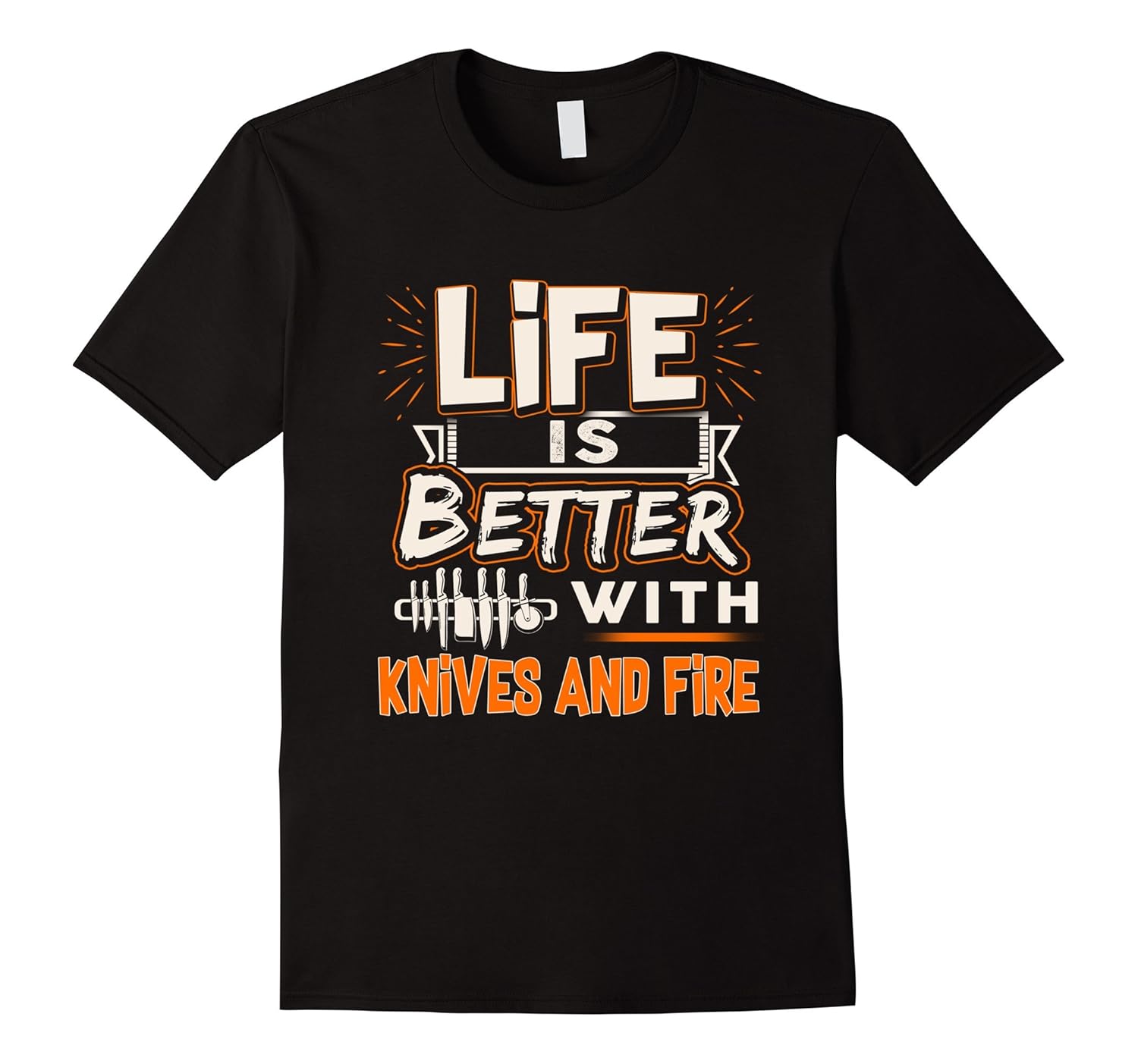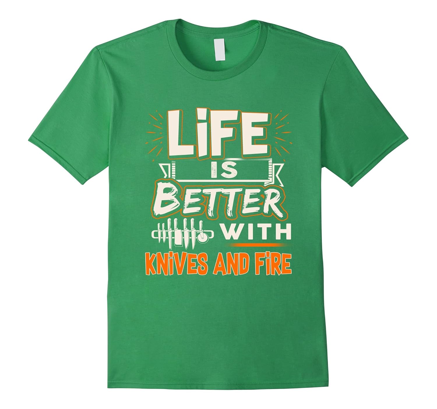Solid colors: 100% Cotton; Heather Grey: 90% Cotton, 10% Polyester; All Other Heathers: 65% Cotton, 35% Polyester, Imported, Machine wash cold with like colors, dry low heat, Chef tshirt , life is better with knives and fire, Chef tshirt , life is better , with knives and fire , life is better with knives and fire , Chef , cuisine , Kitchen , Kitchen assistant , Culinary education , Clean , family chef , Cook , Knife , cooking , fridge , dishwasher , plate , bowl , Papa , ain”, Lightweight, Classic fit, Double-needle sleeve and bottom hem