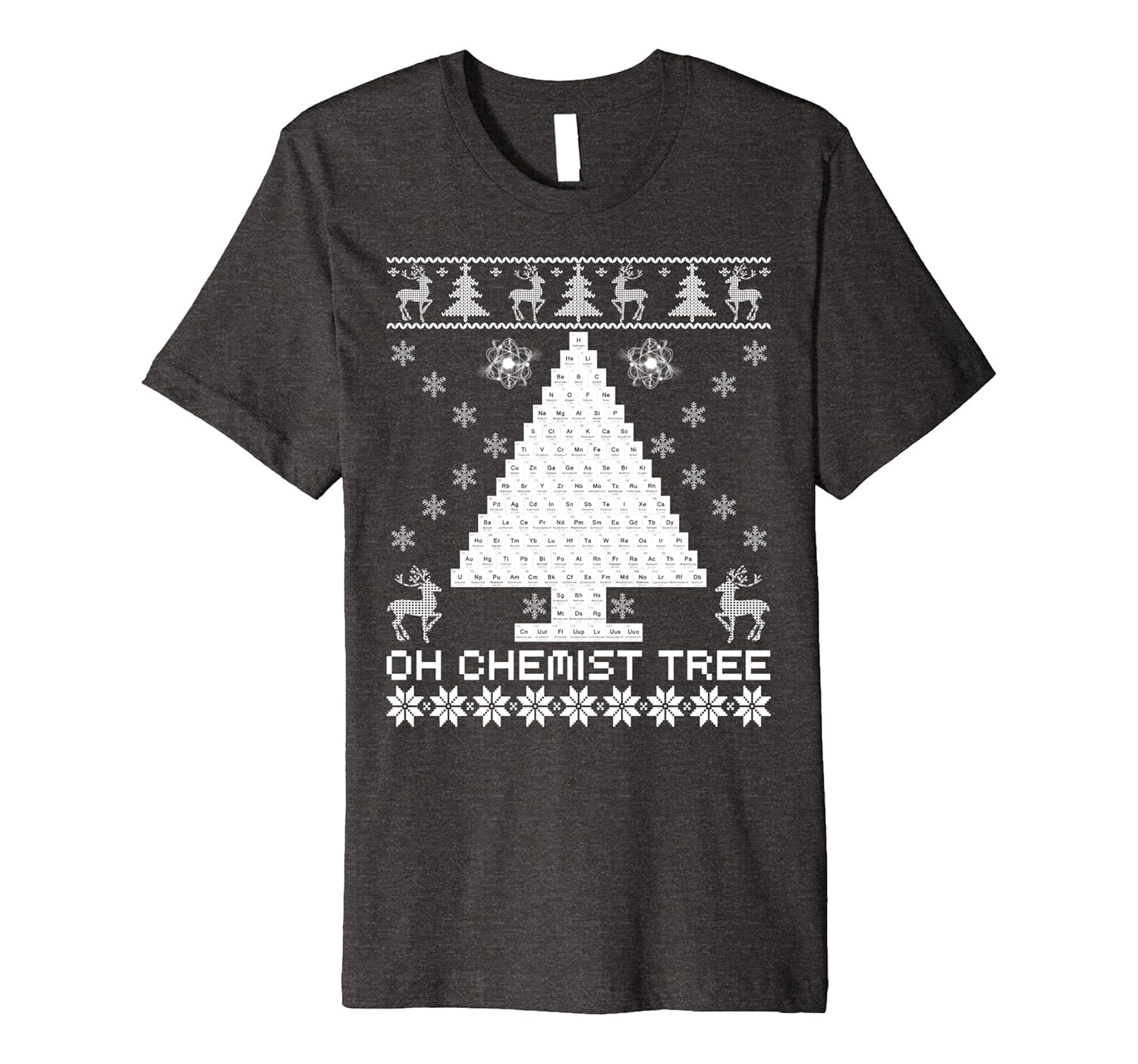 Solid colors: 100% Cotton; Heather Grey: 90% Cotton, 10% Polyester; All Other Heathers: 58% Cotton, 42% Polyester; Imported; Machine wash cold with like colors, dry low heat; Grab this Chemist Tree Premium T-Shirt as a Christmas 2017 or New Year present for that one friend, family member or loved one who loves chemistry and the periodic table! Wear this novelty shirt during the holidays and wish everybody a merry Andamp; great x-mas!; Fit: Slim (consider ordering a larger size for a looser fit); This Chemist Tree Premium T-Shirt is designed and printed to fit. For a more loose fit, we recommend ordering a size up. For more details, please see the sizing chart image. Give this as a present for someone special to you to New Year or Christmas!; This premium t-shirt is made of lightweight fine jersey fabric