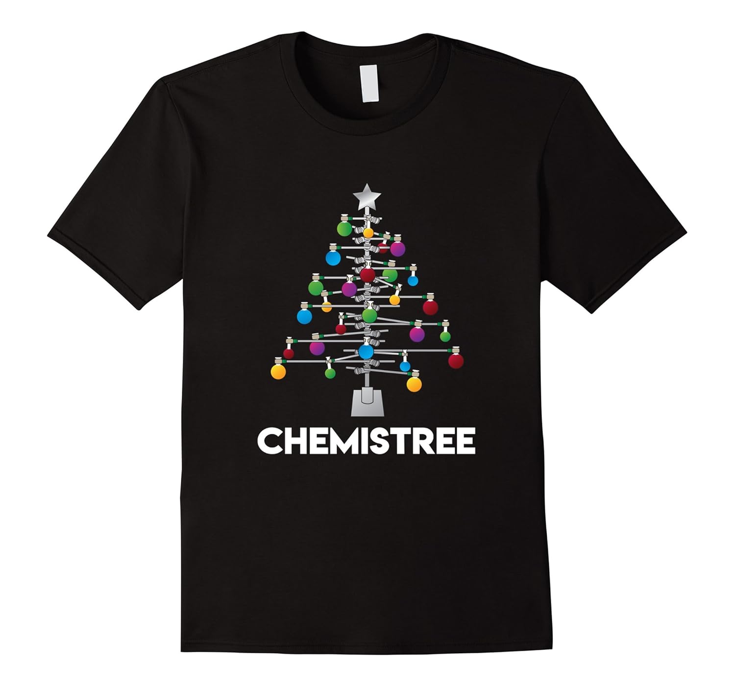 Solid colors: 100% Cotton; Heather Grey: 90% Cotton, 10% Polyester; All Other Heathers: 65% Cotton, 35% Polyester; Imported; Machine wash cold with like colors, dry low heat; This Chemistree T-Shirt is the perfect Ugly Christmas Jumper design to wear around the Christmas Tree this Xmas. A funny pun t-shirt great for the science and chemistry geeks. Funny humor for scientists, teachers, professors or laboratory assistants.; This ugly jumper will make people laugh this holiday season, great for thanksgiving or a halloween costume. A funny joke t-shirt ideal as a Christmas present or Christmas decoration. Science lovers will laugh.This Chemistree tshirt is designed to be fitted; Lightweight, Classic fit, Double-needle sleeve and bottom hem