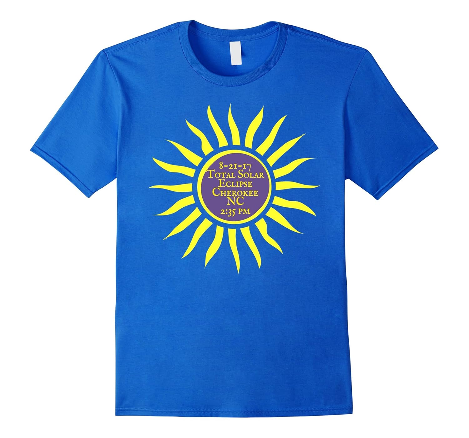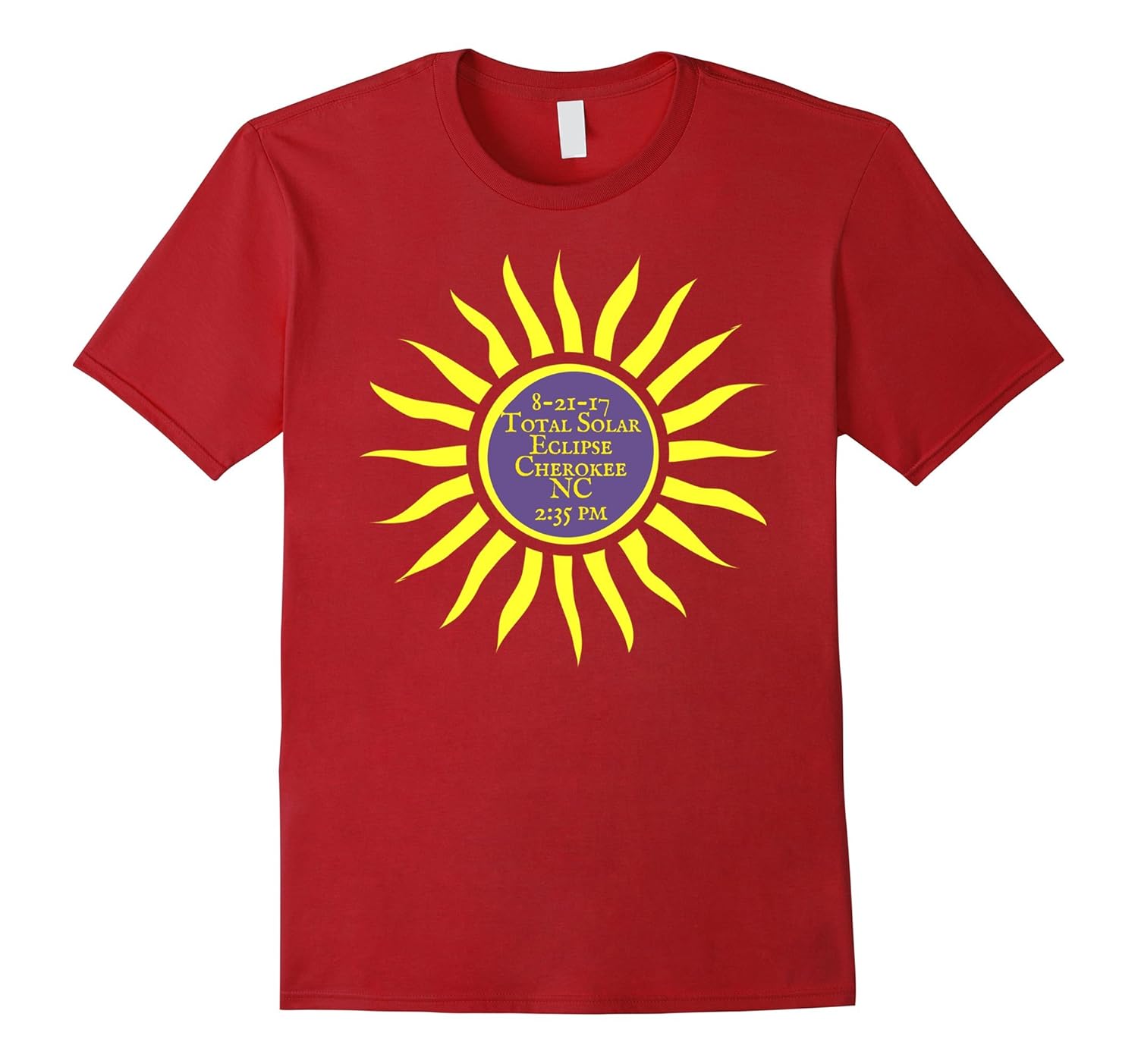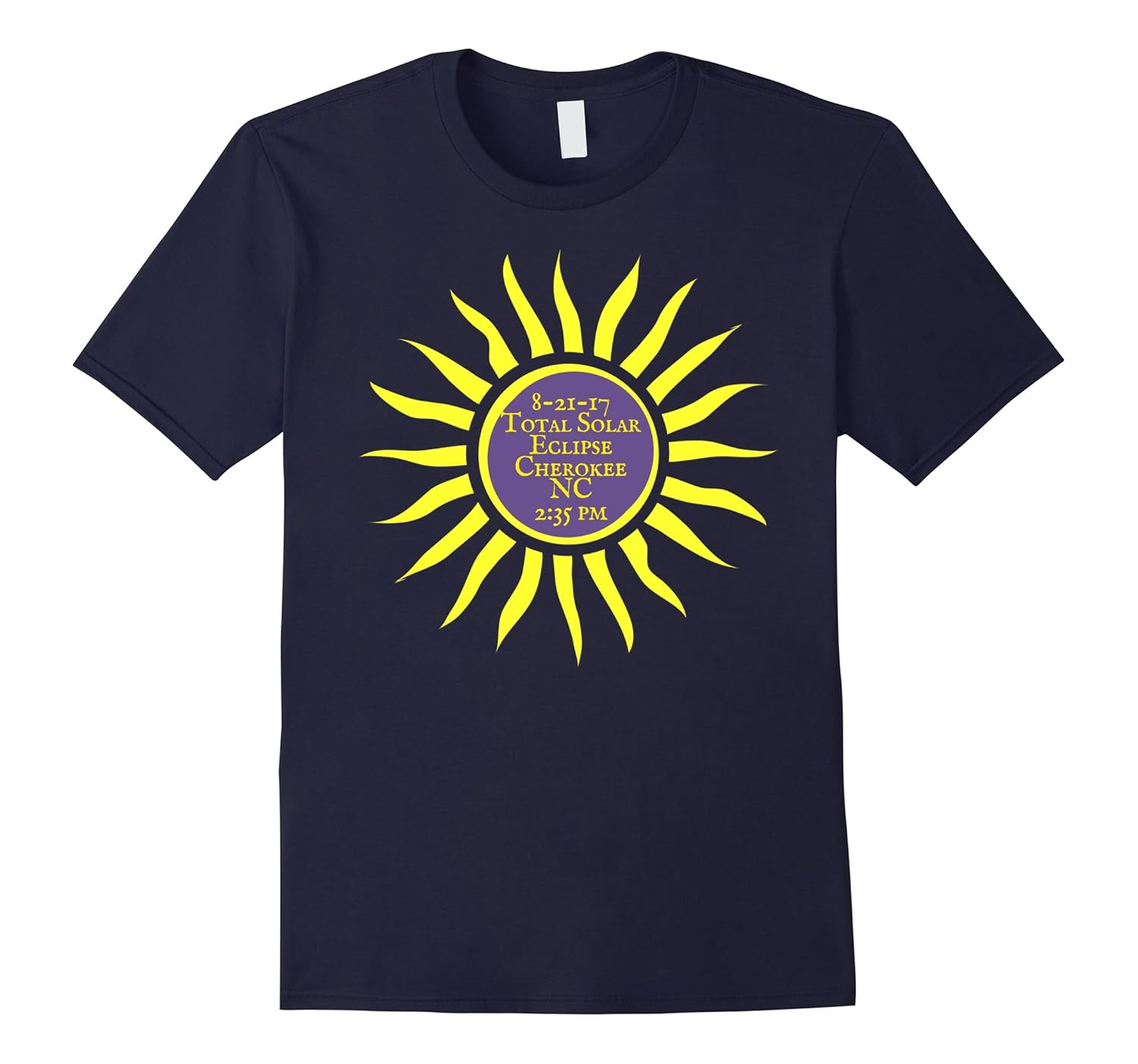 Solid colors: 100% Cotton; Heather Grey: 90% Cotton, 10% Polyester; All Other Heathers: 65% Cotton, 35% Polyester, Imported, Machine wash cold with like colors, dry low heat, How awesome! Cherokee NC is on the center line of the August 21 2017 Total Eclipse of the Sun! Here”s a souvenir t-shirt of this rare historic event!, Going to Cherokee to witness this once-in-a-lifetime solar phenomenon. Wear this fun eclipse tee and celebrate the Path of Totality over North Carolina and the Smokies! Happy eclipsing everyone!, Lightweight, Classic fit, Double-needle sleeve and bottom hem