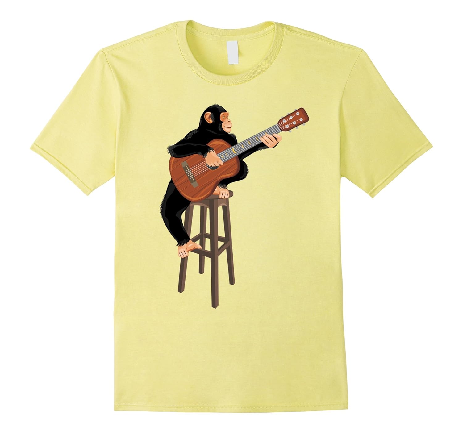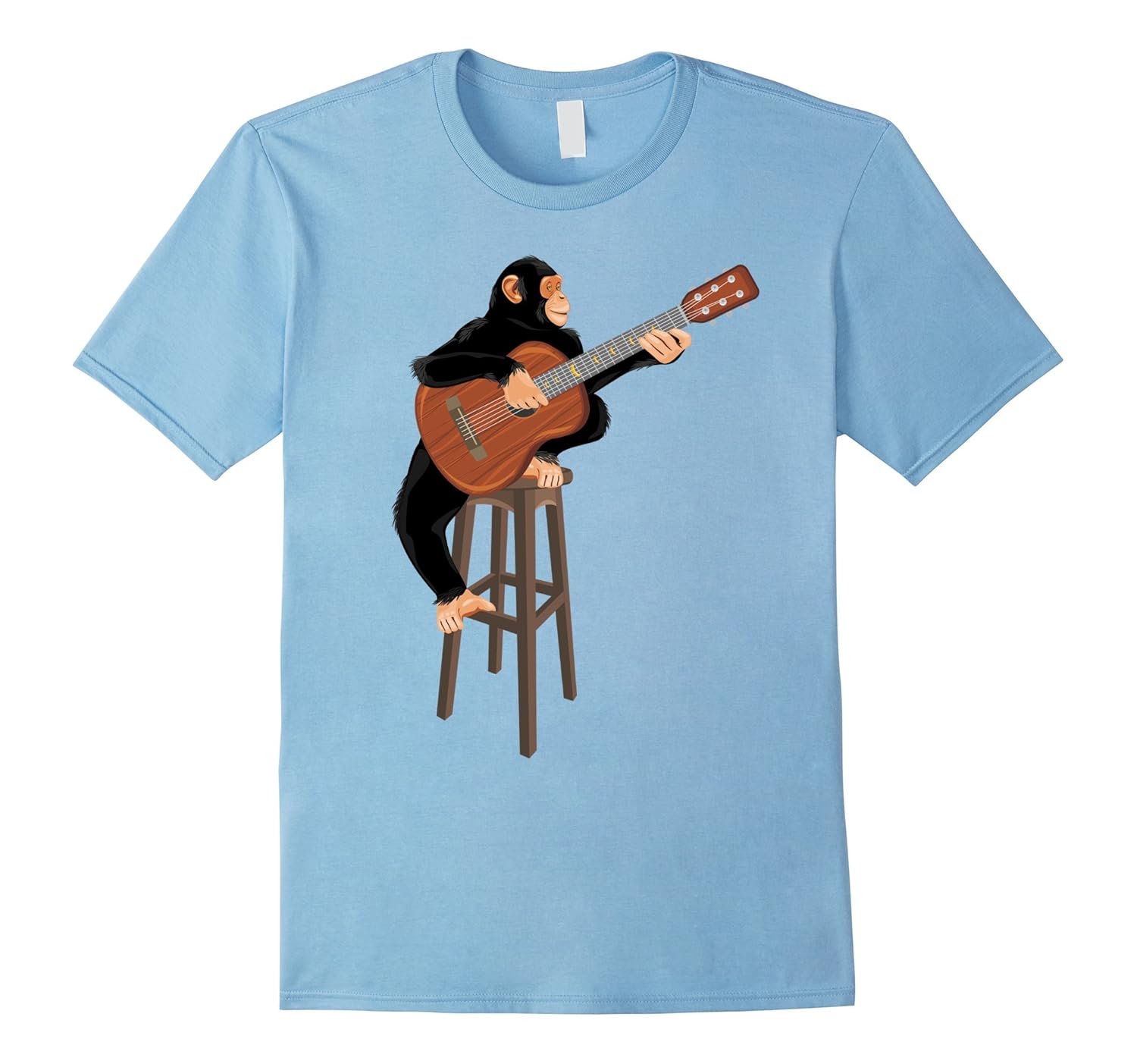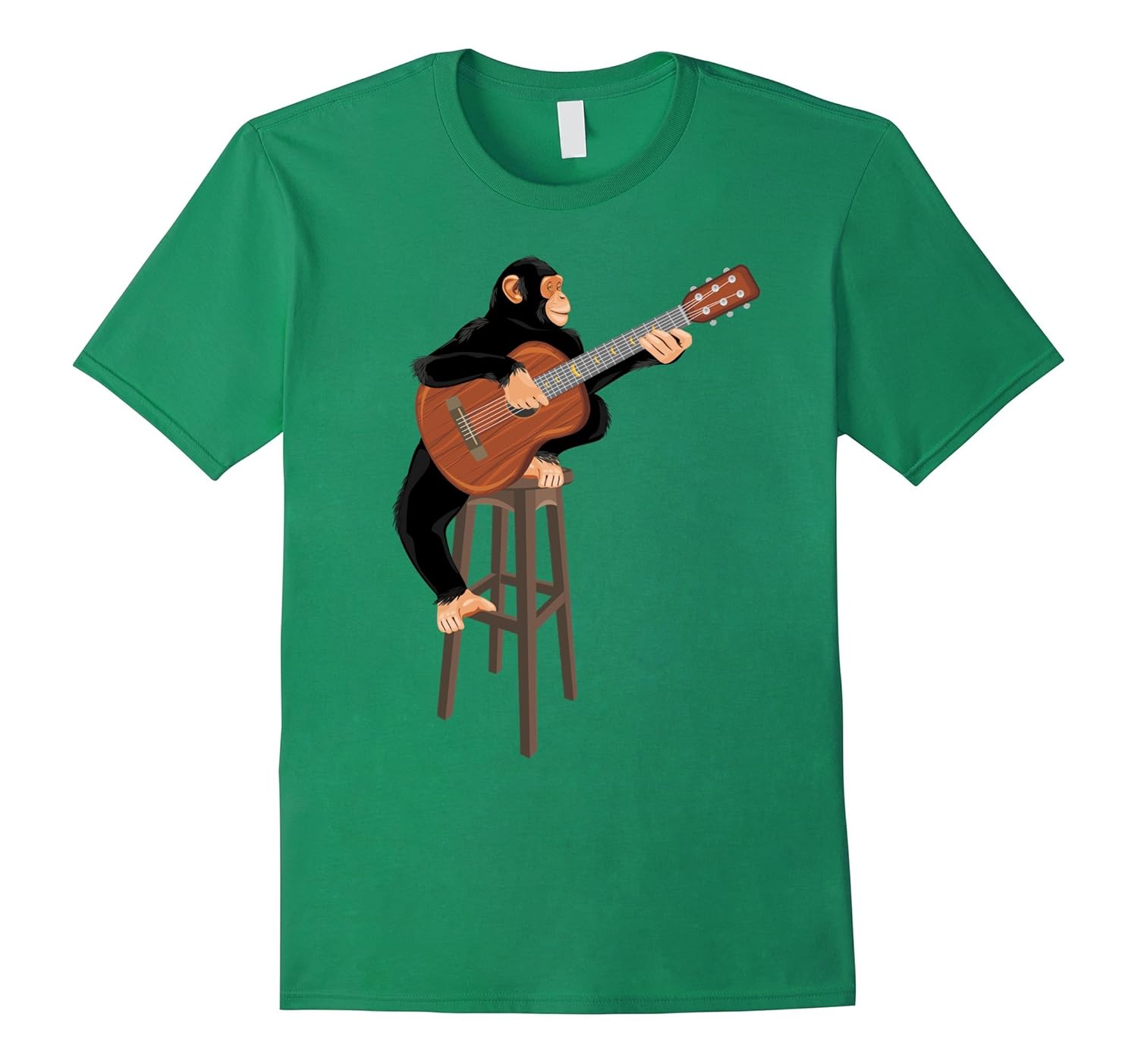 Chimpanzee playing acoustic guitar. Funny monkey shirt.-ANZ