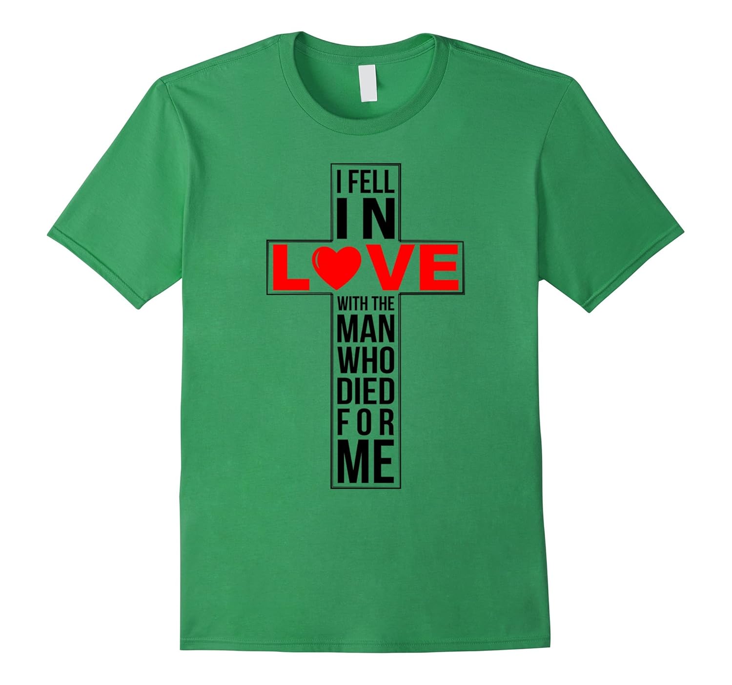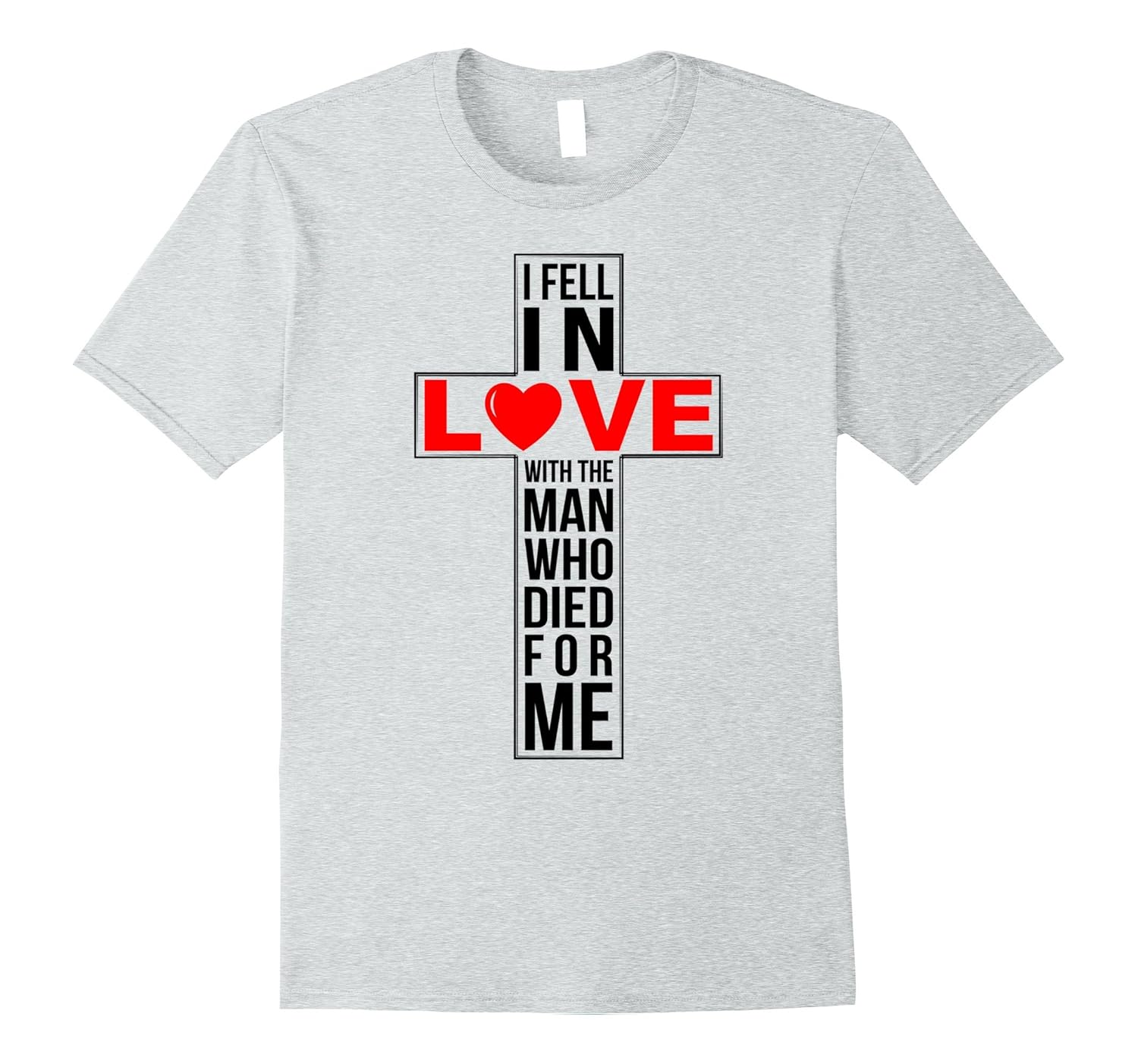 Solid colors: 100% Cotton; Heather Grey: 90% Cotton, 10% Polyester; All Other Heathers: 65% Cotton, 35% Polyester, Imported, Machine wash cold with like colors, dry low heat, This shirt makes a great gift for any Christians, religious people or believers. Show God that you love Jesus with this heart on the cross, These tees read I Fell In Love With The Man Who Died For Me, Lightweight, Classic fit, Double-needle sleeve and bottom hem